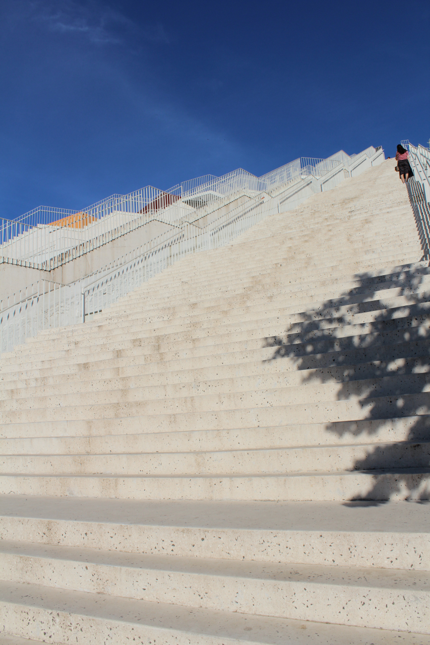 暑い中、家族がピラミッドの上からティラナの眺望を見て、中には入りませんでした。
