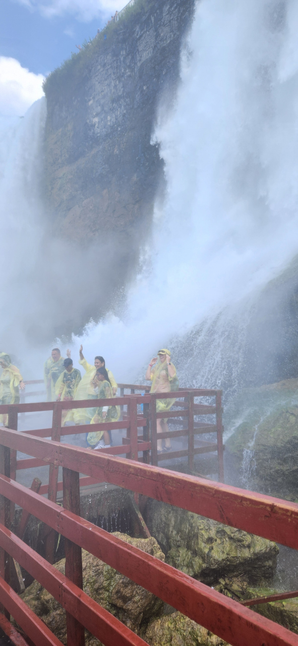 時間のないなかこのツアーに参加しましたが、とても面白かったです。エスカレーターで崖を下ったところはナイアガラの滝(アメリカサイド)の下、すぐ真横に歩道があり、一番凄いところはもう滝修行、いやそれ以上です(ものすごい勢いで滝にあたります)。ナイアガラ・シティクルーズにも乗って少し濡れましたが、そんなものじゃない、びしょ濡れです。カッパもただでくれますがそんなものでは全然足りませんでした(気をつけないと携帯が壊れると思います)。足下もビショビショになるのでサンダルのほうがいいです。