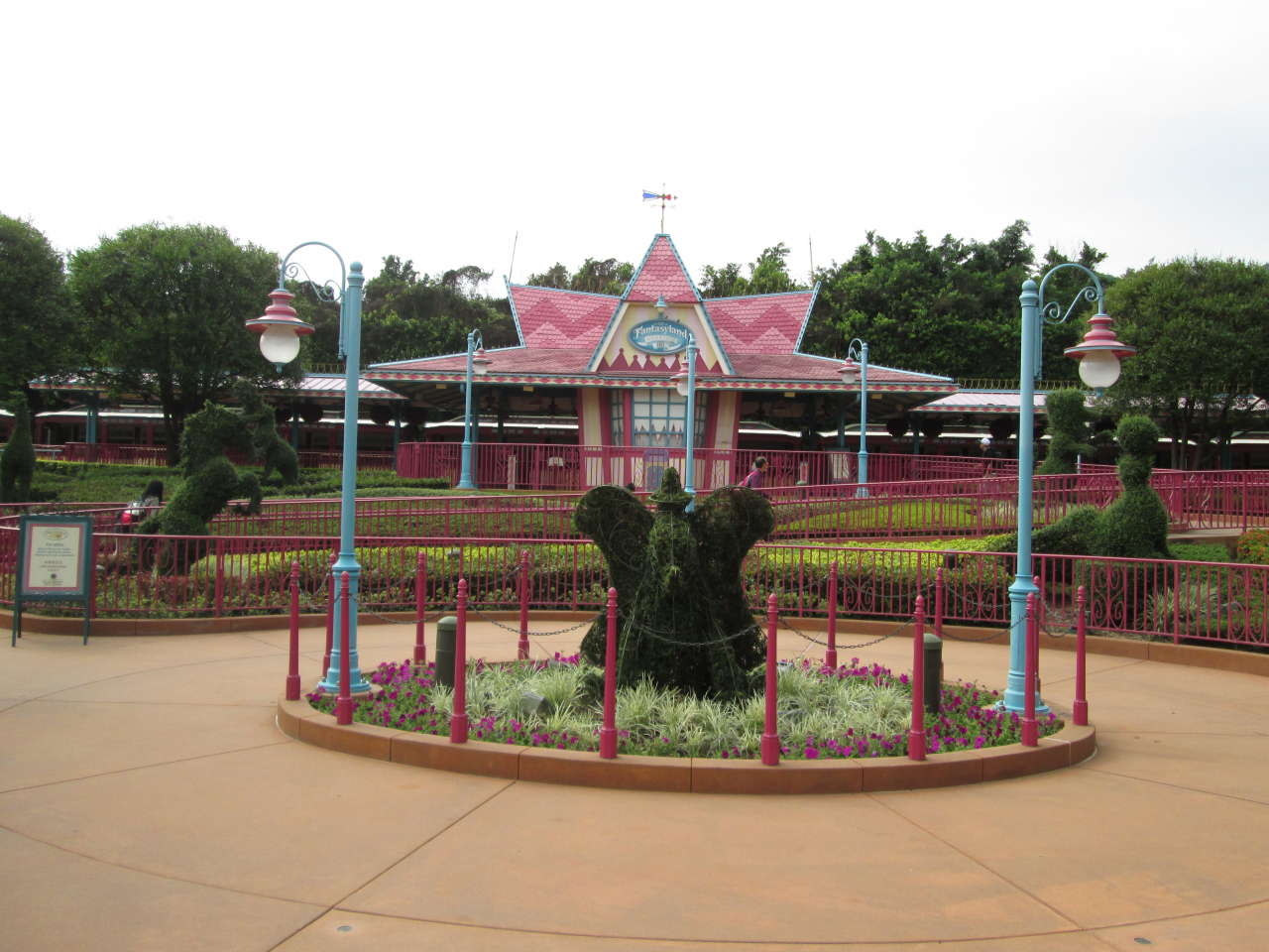 ファンタジーランドは香港ディズニーランドの敷地のなかでもっとも奥にあります。ディズニー自体、出入口は1カ所なので、出入口からもっとも遠いところにあるためか、人はまばらで落ち着いた雰囲気でした。一旦、アトラクションを休んで庭園の景色を楽しみました。