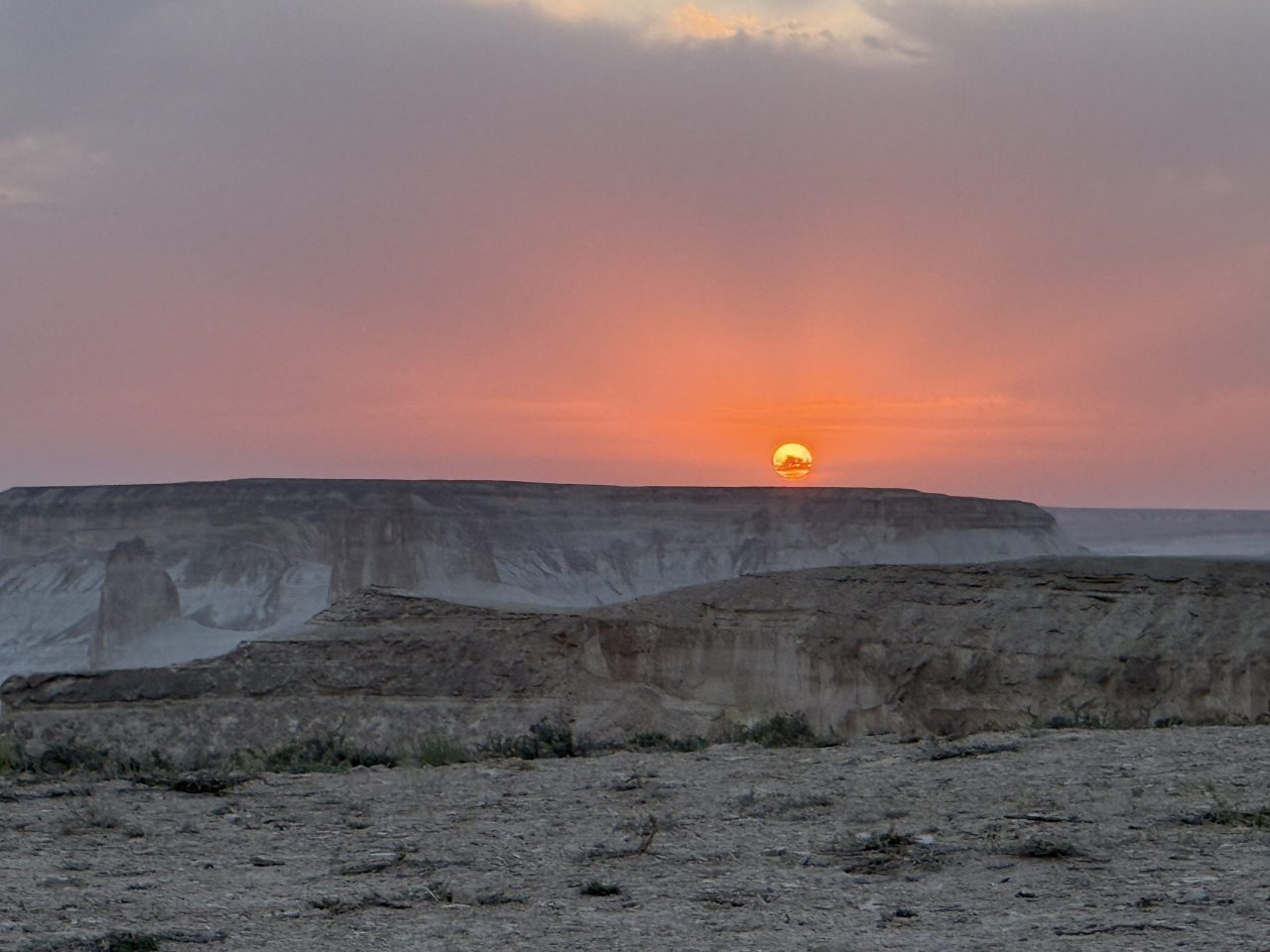 キャンプ地の見渡す限り360度絶景。恐竜の時代にタイムスリップしたか、別の星に来てしまったかのような風景。その中で日が沈みオレンジ色のサンセット。絶対おすすめです。