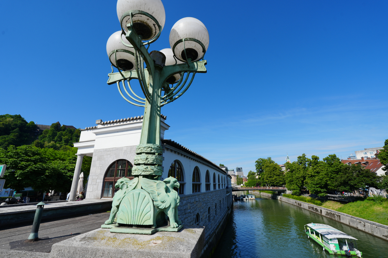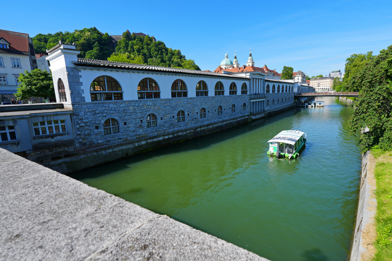 スロベニアの首都、リュブヤナの町を流れる川で、町の中心になるリュブヤナ城を取り巻くように流れています。