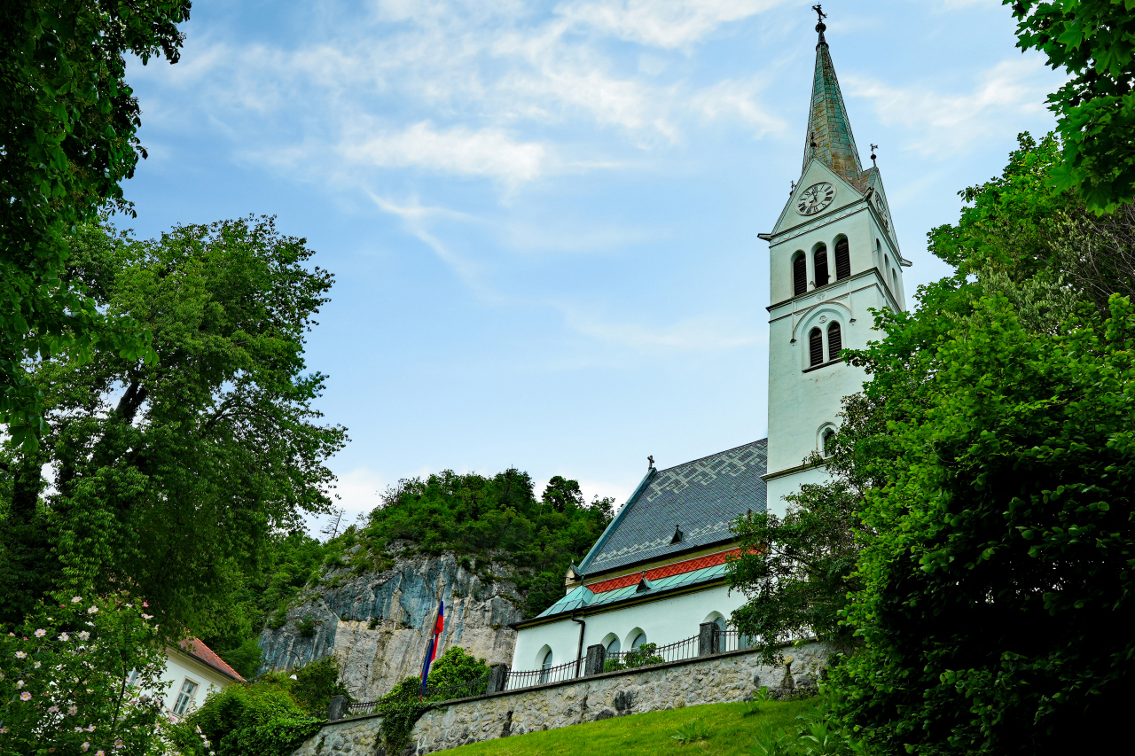 ブレッド湖湖畔に建つ教会で、湖岸を俯瞰した場合、非常に目立つ建物になっています。ブレット湖といえば、湖の中の島にある聖マリア教会が有名ですが、景観的にはこちらのほう湖の雰囲気とよく合って美しく見えます。