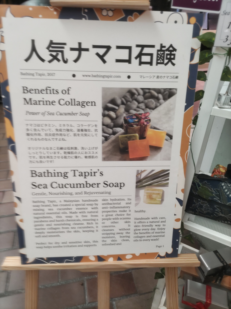Baphing Tapirは、ナマコ以外の石鹸もあったようです。私は、友達にナマコ石鹸を頼まれたので、それだけにしました。