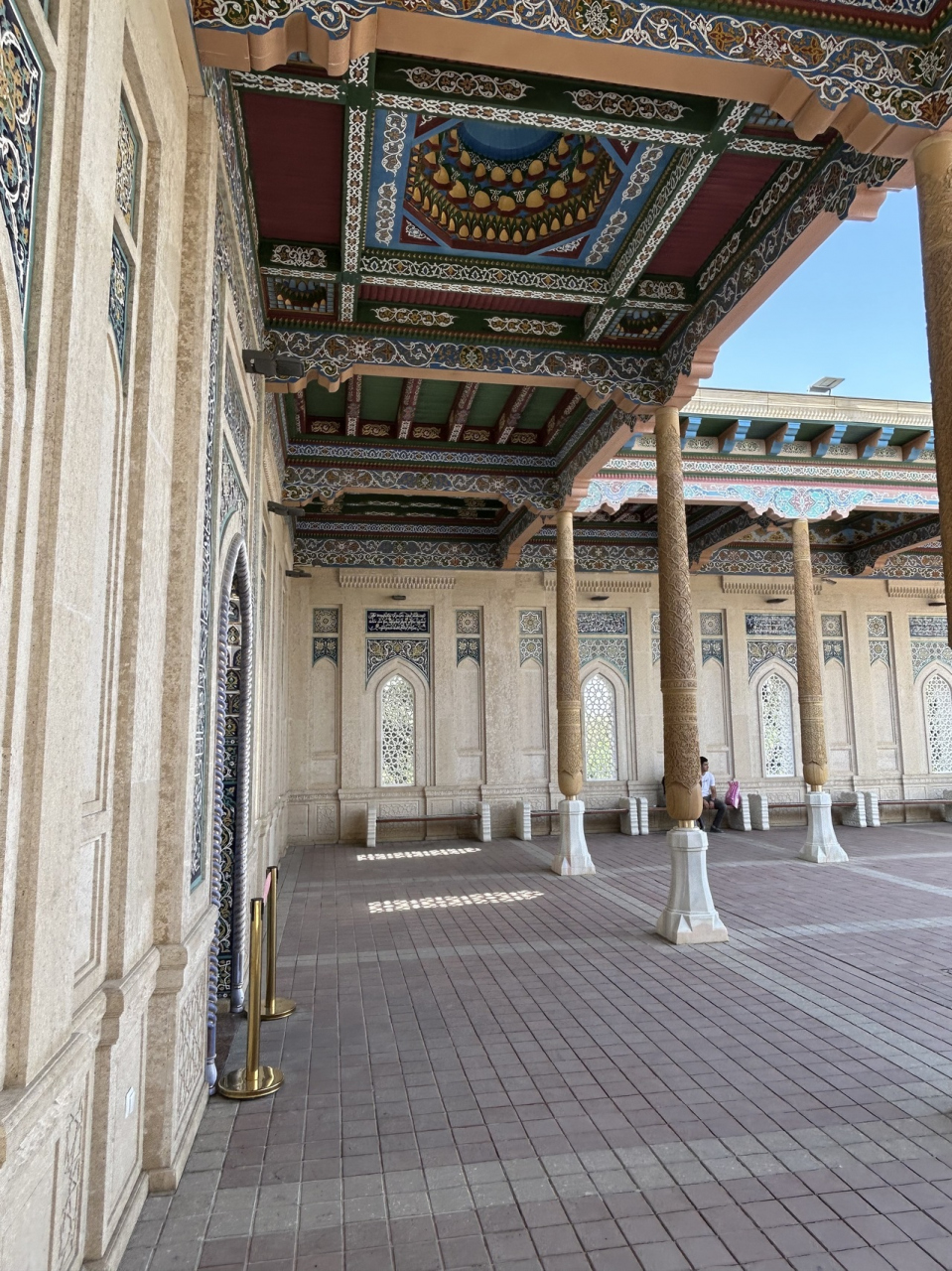レギスタン広場から電動カートに乗って、バザールに着きます。そこからすぐにこのモスクが見えます。他のモスクと違い、美しい青の世界ではないけれど、回廊などが趣がありました。コーランも聞こえてきました。ここから見る旧市街地は、見ごたえがあります。