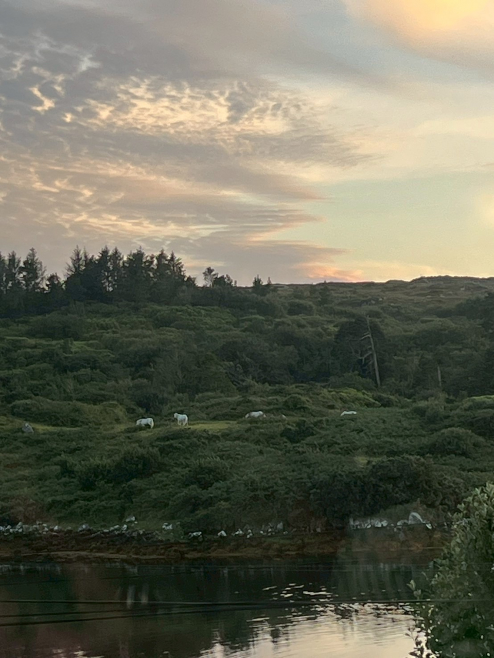 路駐していた車がいたところにもどって、湖の岸に降りて、遠くから建物を眺めました。