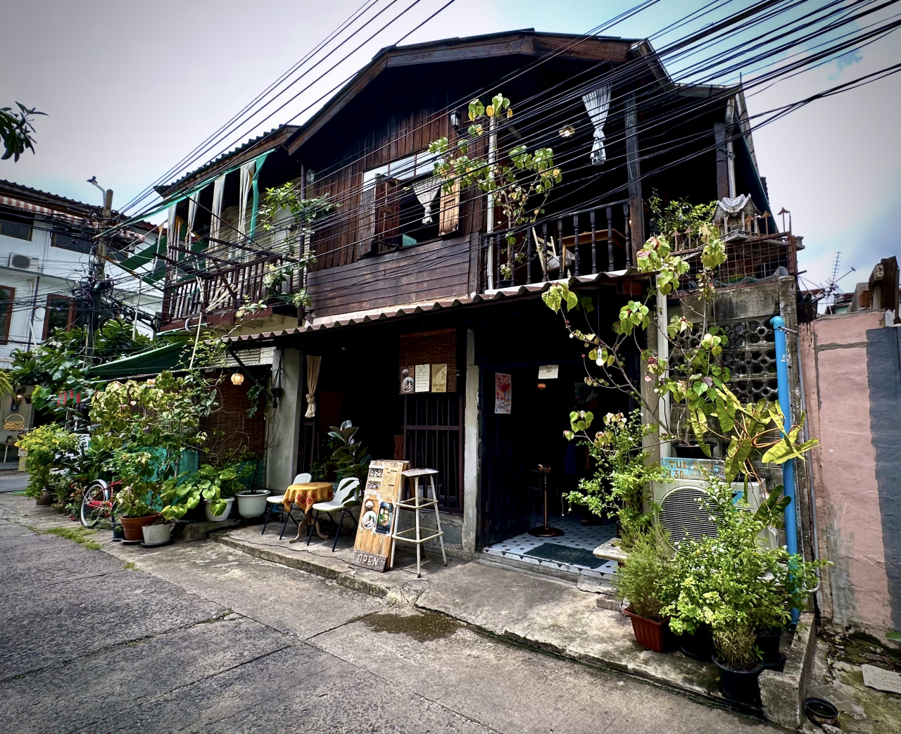 ちょっと、ウロウロしながら探したが、小さなソイ(soi)に入った場所にある築100年(と言われている)これまた小さな、小さな家屋。