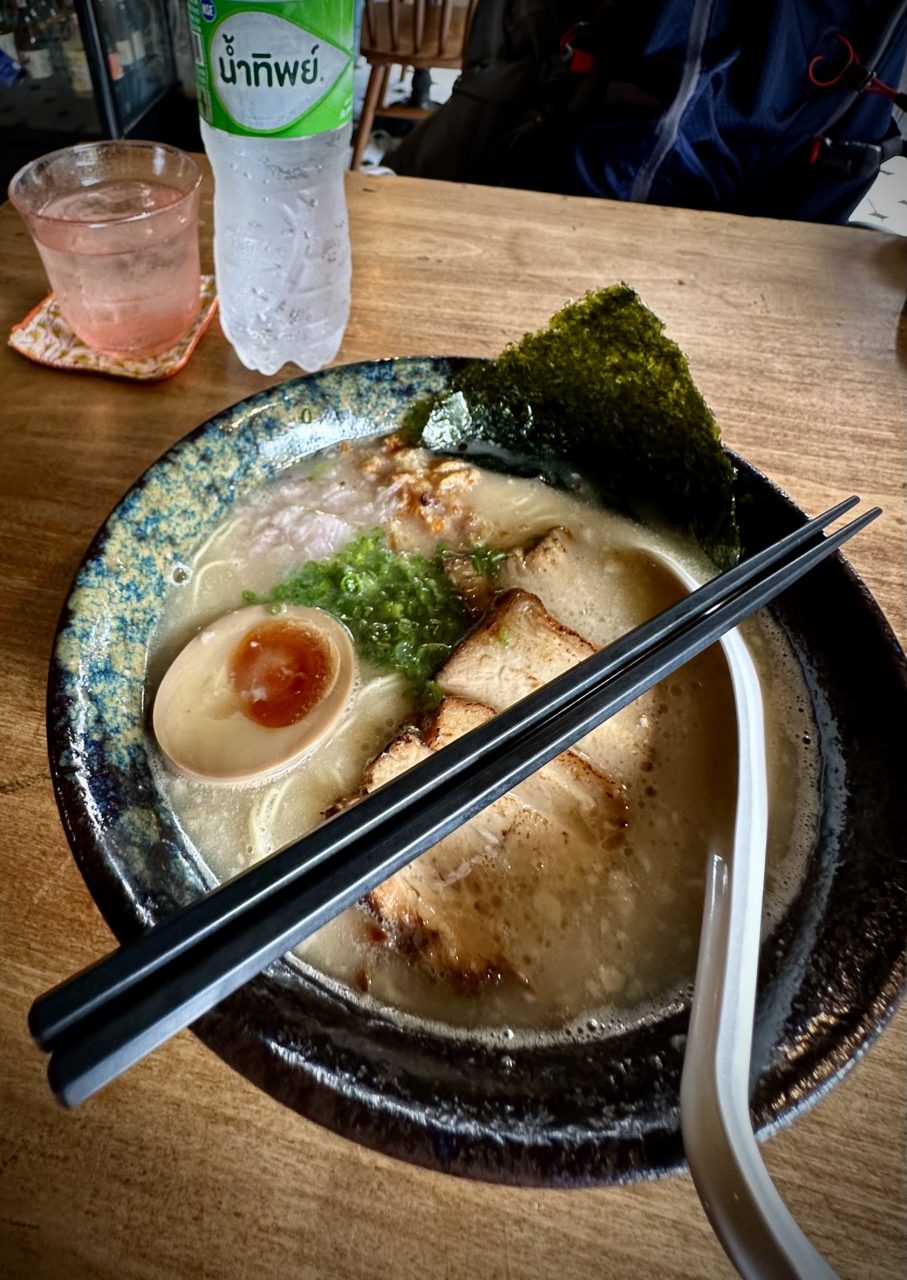 カオサンロードを北上した(日本人はほぼ無し...な)場所にある『豚骨ラーメンの「プロショップ」...笑)』、美味いぞ!(バンコク/タイ)
