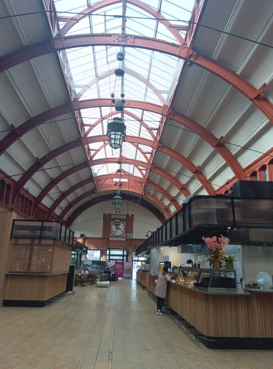 行きは階段を上がって、ガラス張りの建物からでました。運河を渡って歩き広場を2つくらい過ぎて賑やかな通りに出る立地です。