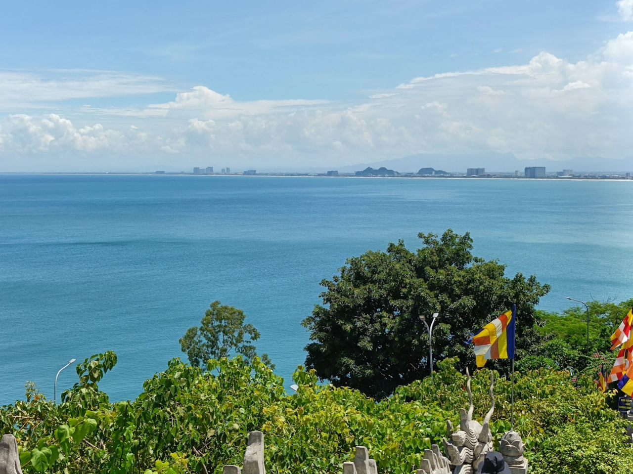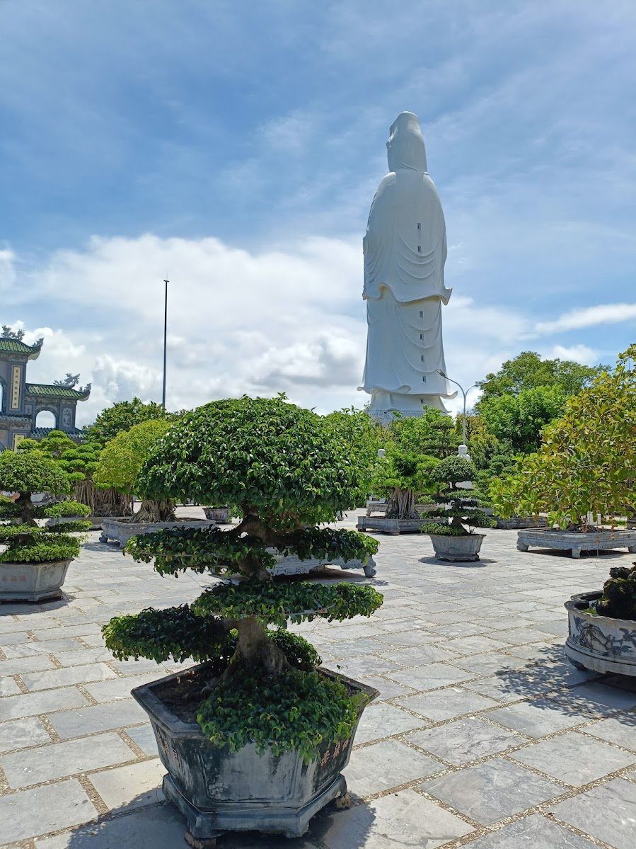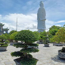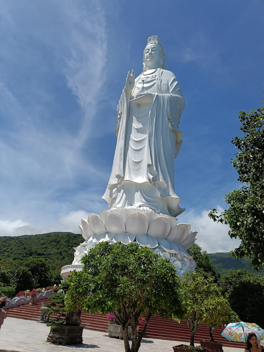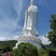 巨大な白い大観音像。ダナンの特にビーチからよく見える。車で、長い石段をのぼらずに近くまで行ける。バブル期に日本各地に建造された巨大仏像を彷彿させる。像の真下から見ると迫力満点。ツアーコースにもなっているようで、観光客でにぎわっとぃる。