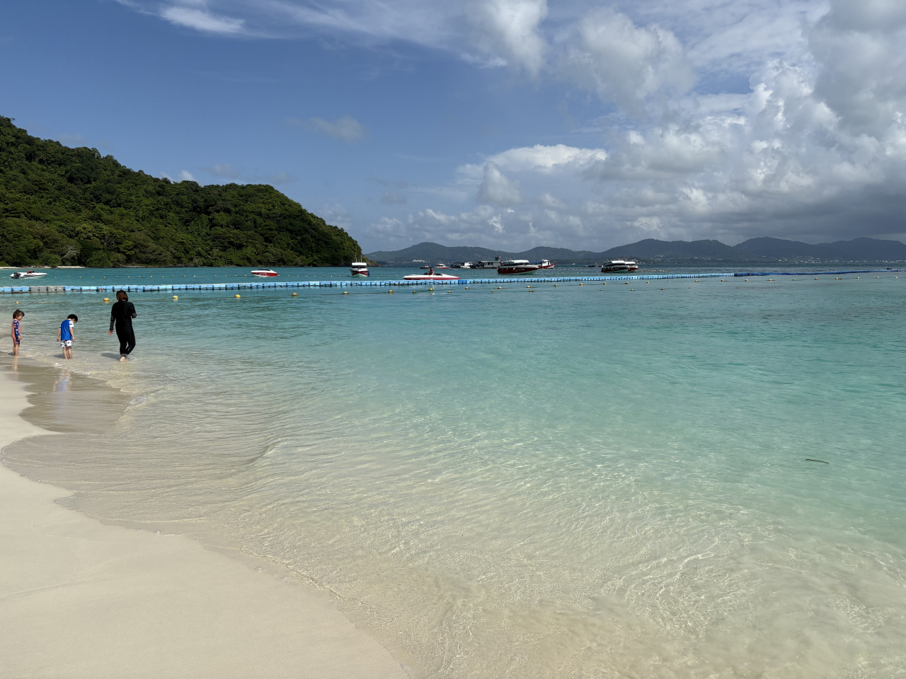 コーラル島にツアーで参加しました。9時30発のスピードボートで島に行きとても有意義に過ごせました。海はとてもきれいで透き通っています。300バーツで2人用のビーチベットを借りましたが。とてもゆったりできます。昼食は種類は少ないですが食べ放題。スイカは初めの皿しか提供されず、無くなったのでお店の人に頼みましたが出てきませんでした。アイランドホッピングするより1か所にとどまっていられるのでゆっくりできます。