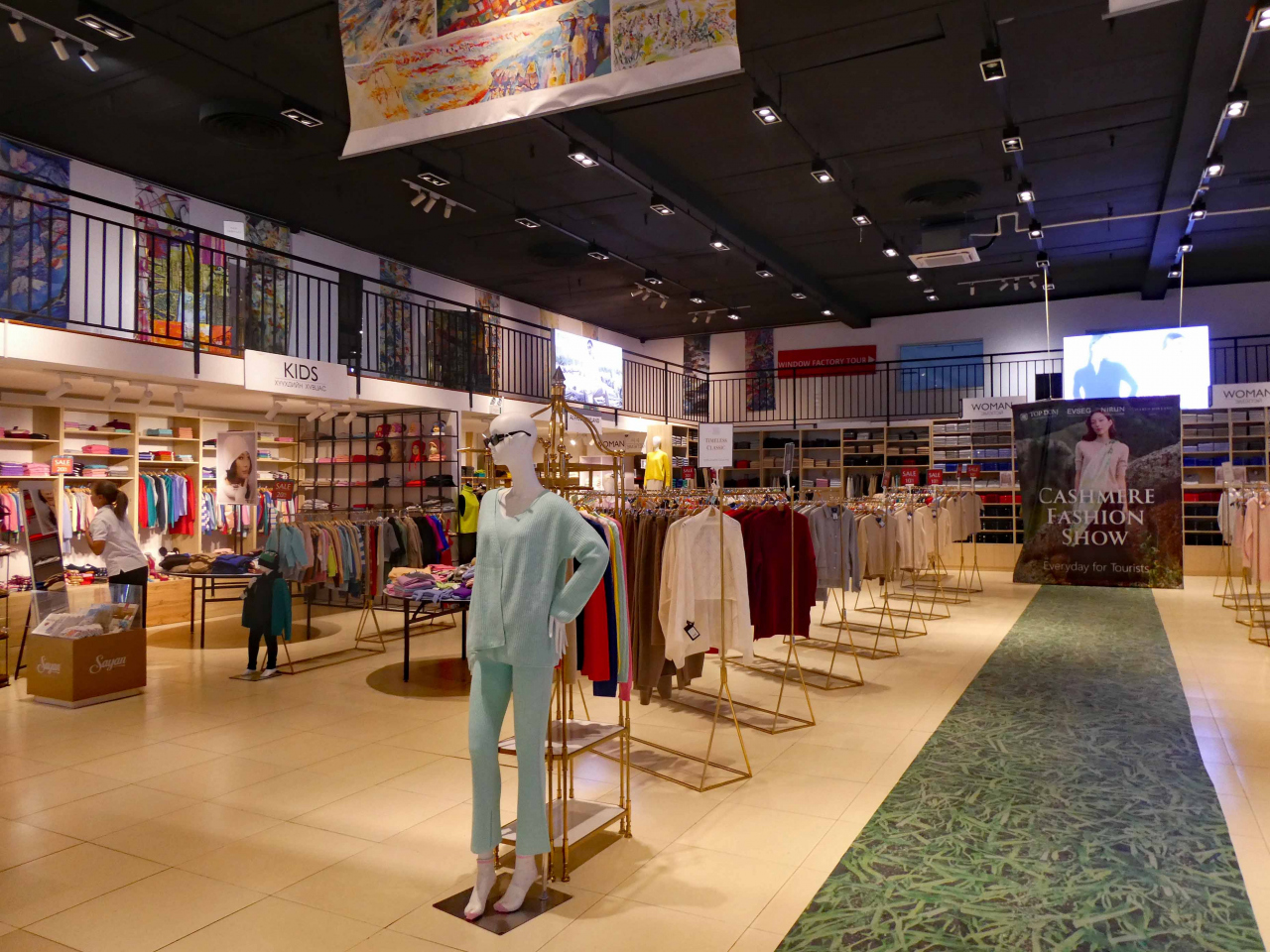 カシミア製品が多種類揃っている工場付属の販売ショップ