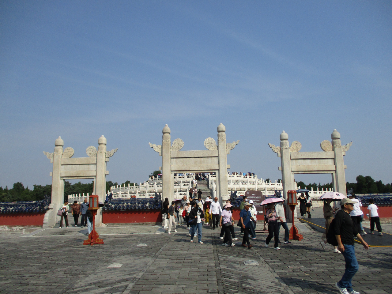 天壇公園は結構な広さがありました。ひと通り見て回るのに、1時間半ぐらいかかったでしょうか。北京の公園はどこに行っても広かったです。緑地帯のところでは太極拳などをしている人がいて、普段の中国人の方の日常を垣間見た気がして、おもしろかったです。