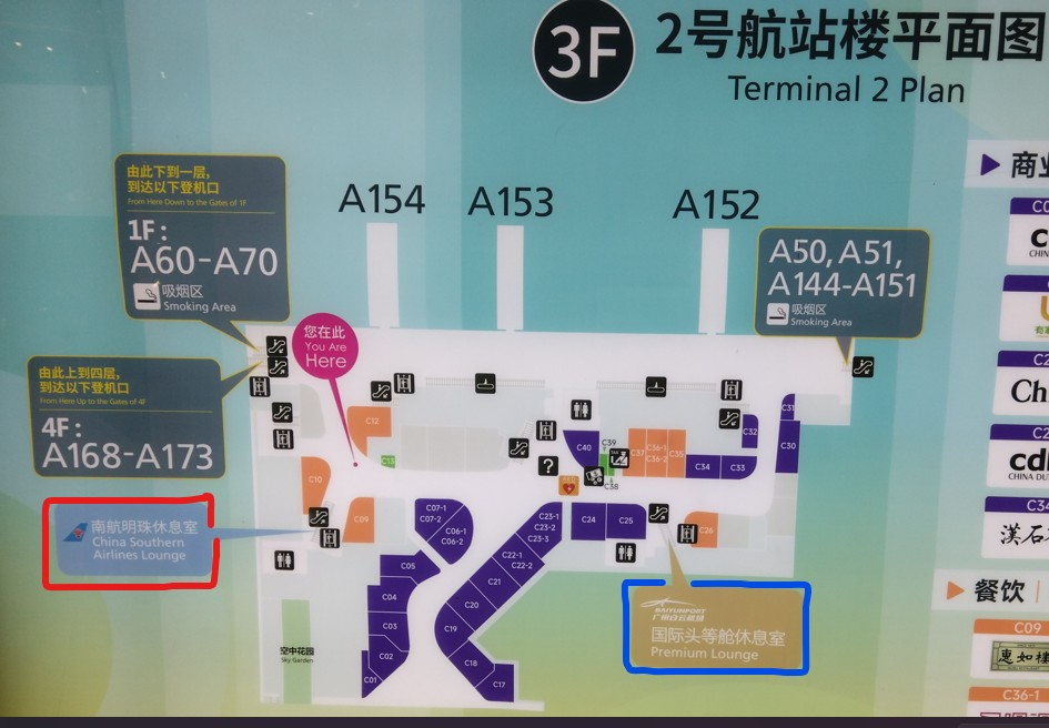 広州白雲国際空港 第2ターミナルの3Fフロアマップ