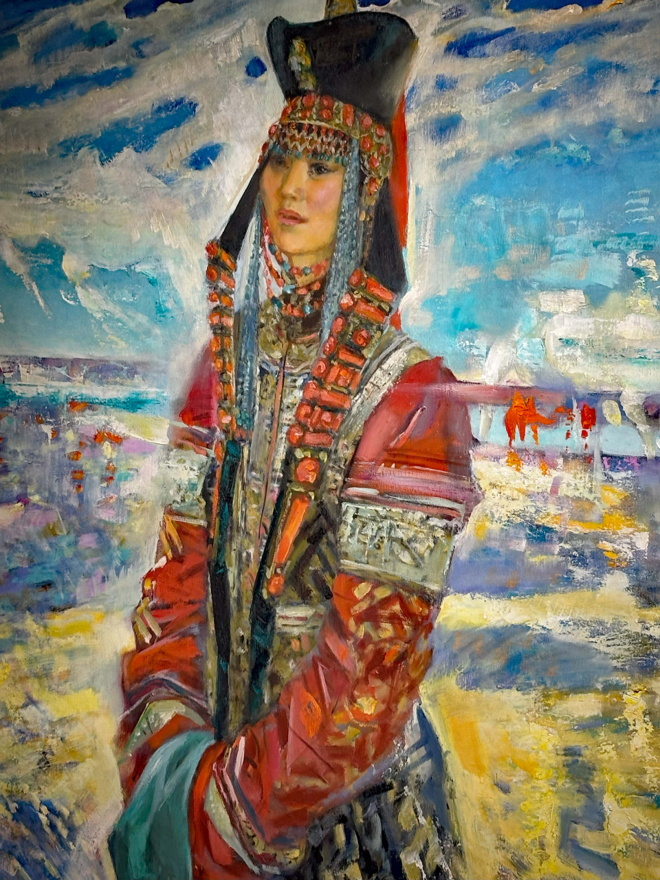 モンゴル国立近代美術館は、ザナバザル美術館から近代美術部門を分離して1989年に開設された美術館です。スフバートル広場の東側約100mのアクセス便利な場所にありますが、建物外見が普通の商業ビルですので見つけ難い印象です。入館料は、2025年8月、大人10,000トゥグルグ(420円)でした。