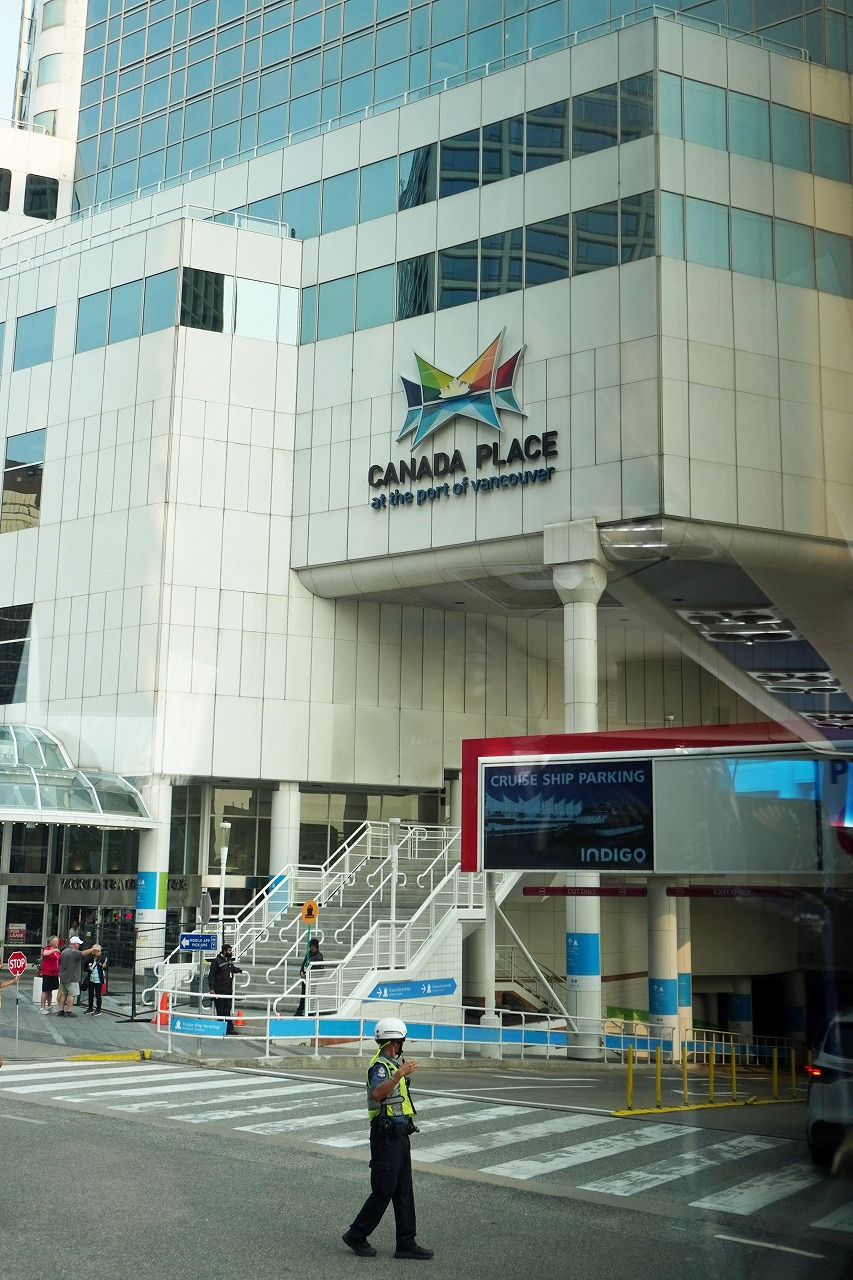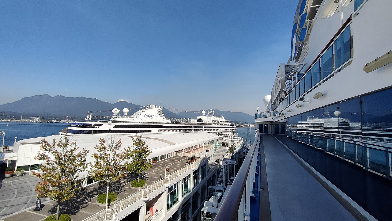 バンクーバー発のアラスカクルーズの出港と帰港地点でもあります。バンクーバー空港でクルーズ会社の送迎バスか日本の旅行会社が手配したバスに乗ると40分ほどの移動で着くことが出来ます。地下にバス停車場があり、トランクなどはバスのドライバーないしクルーズ会社にゆだねて身の回りの荷物を持ってカナダの出国手続きに向かいます。その後はアメリカ入国の手続きと続きます。最後にクルーズ会社の手続きになり乗船カードまたはメダリオンを受け取れば乗船するだけです。ここまでの流れで特にスマホがネットに繋がっている必要はありませんが、クルーズ会社のアプリは使えた方がいいと思います。このクルーズターミナルは船が3隻も入るとかなり混雑して時間がかかるので個人の場合は早めに手続きに向かった方が良いと思います。今回2隻だけでもかなり混んでいましたが、係員の方は「今日は空いていますよ。」とおっしゃっていました。それでも2時間はかかりました。帰りの場合も同じ流れでしたが1時間ほどでバスに乗ることが出来ました。