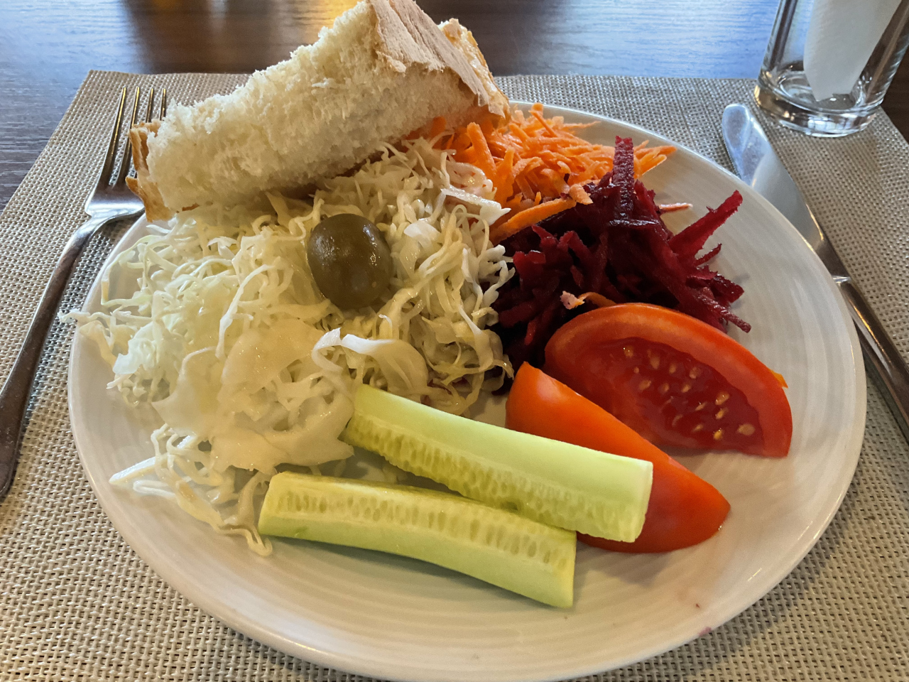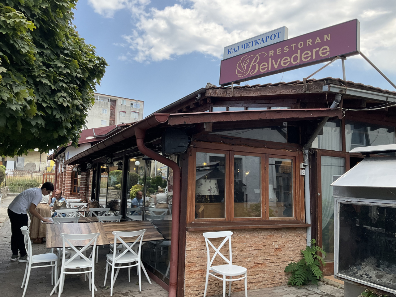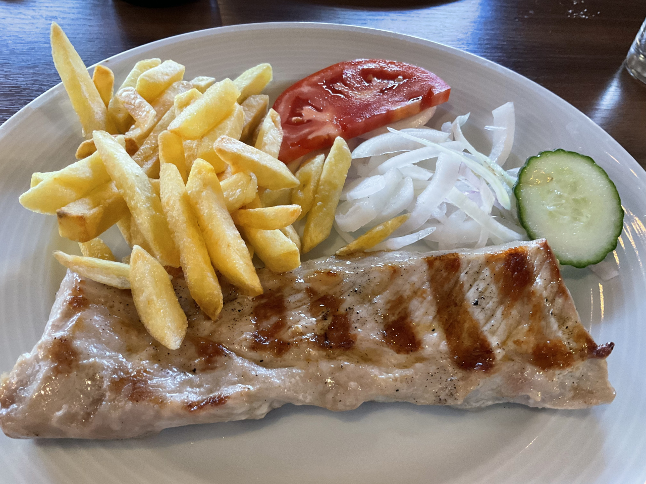 ツアーのメニューはBela Vesalica ベラ・ヴェサリカといって、豚ロースのグリルにフライドポテトや生の玉ねぎ、トマトを付け合わせたバルカン半島一帯の肉料理と野菜サラダ、パンが出てきました。