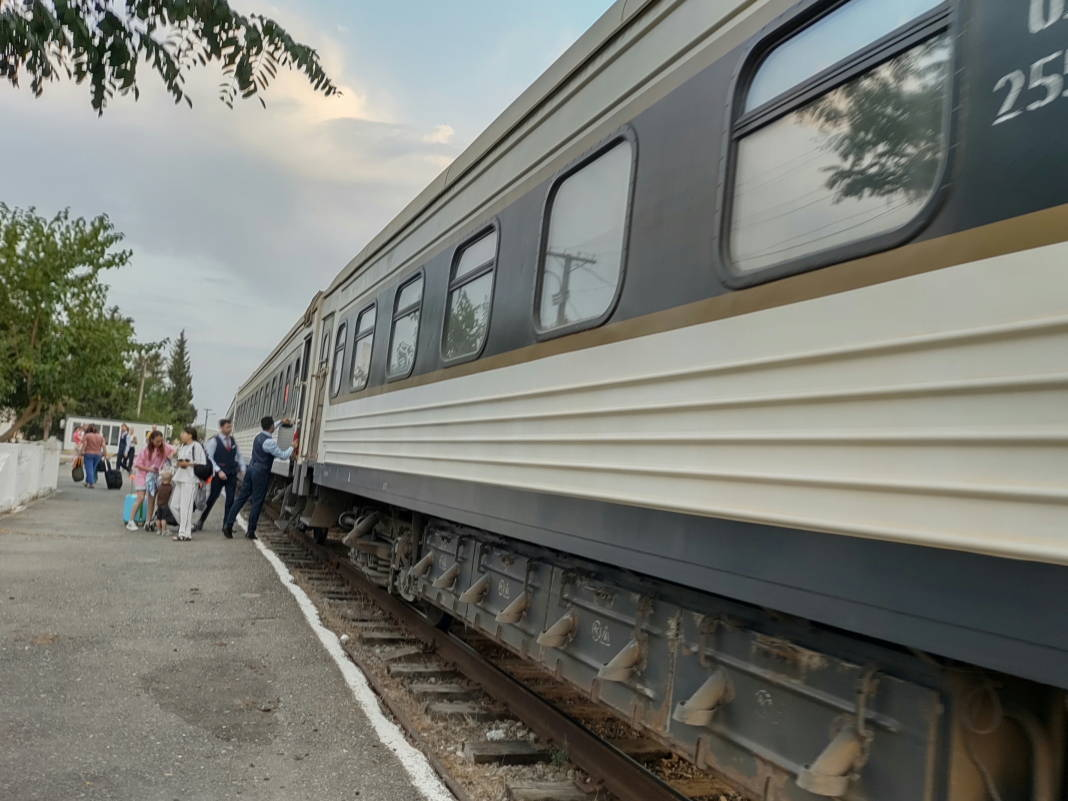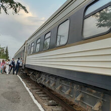 バクーからの列車は30分ほど遅れて6:20頃にシェキに到着しました。シェキの駅前では列車の到着に合わせてたくさんのタクシーが待っていて、激しく客引きをしていました。そのうちの1台に約20キロ離れたシェキのホテルまで二人で6マルカで乗せてもらいました。
