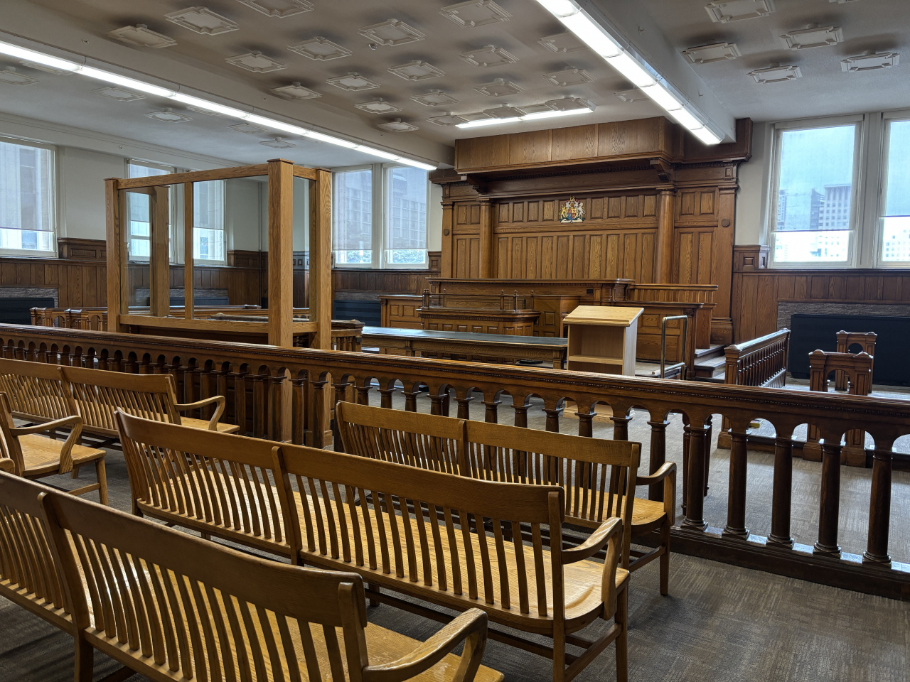 トロントの街の中心エリアのシティーホールの隣にある立派な外観の建物で、かつて使用していた旧市庁舎です。現在は裁判所として使用されていて、観光客は入場できない施設ですけれど、特別に公開されていて、館内に入ることができました。館内も立派な造りになっていて、実際に使用している法廷なども見学することができました。普段、見学できない貴重なスポットに入場できて大満足です。