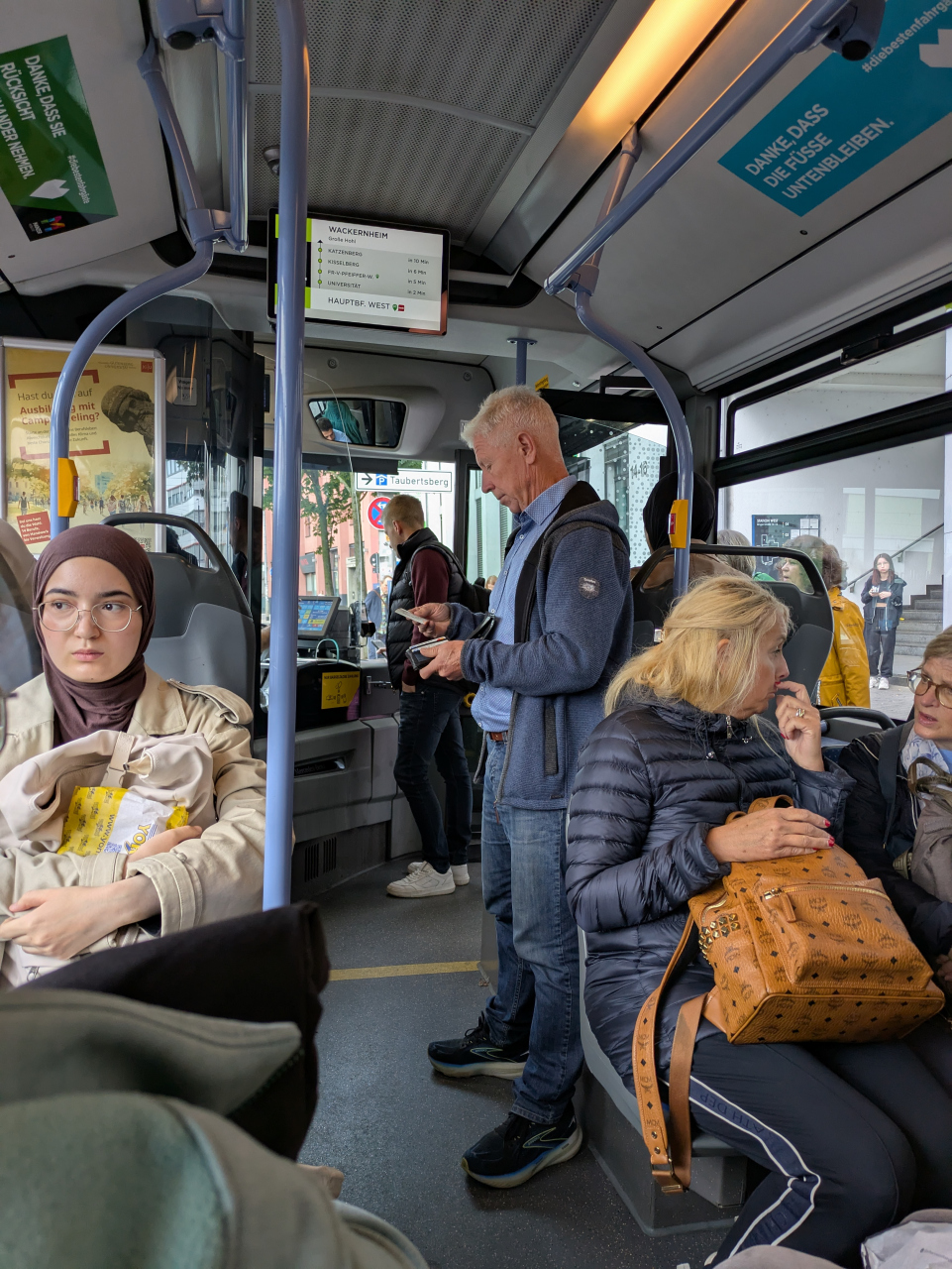 同じ路線、停留所で降りても、日によって値段が違った。多分運転手の入力の匙加減だと推測している。普通のドイツ人は多分、スマホのアプリで切符を購入しているのだと思う。とはいえ、私以外にも運転手から切符を購入する人は一停留所あたりに数人程度いた。