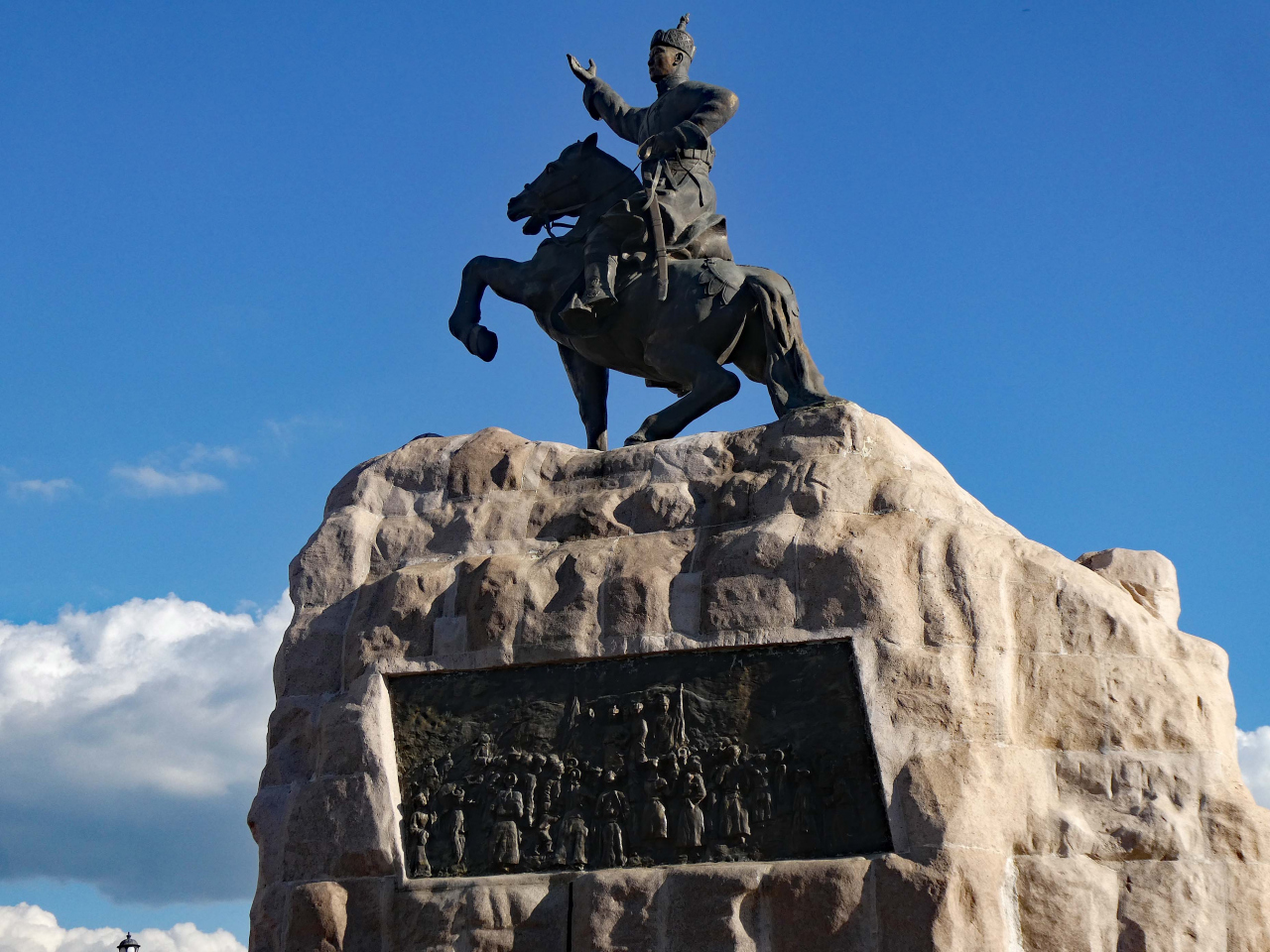 広場中央に名称由来であるダムディン・スフバートル(1894-1923)の騎馬像があります。スフバートルは、20世紀初め、中国支配下にあったモンゴルを共産ソ連の援助を得て独立させた人物で、国の英雄と見做され、モンゴル紙幣(50, 100トゥグルグ札)の肖像に採用されています。