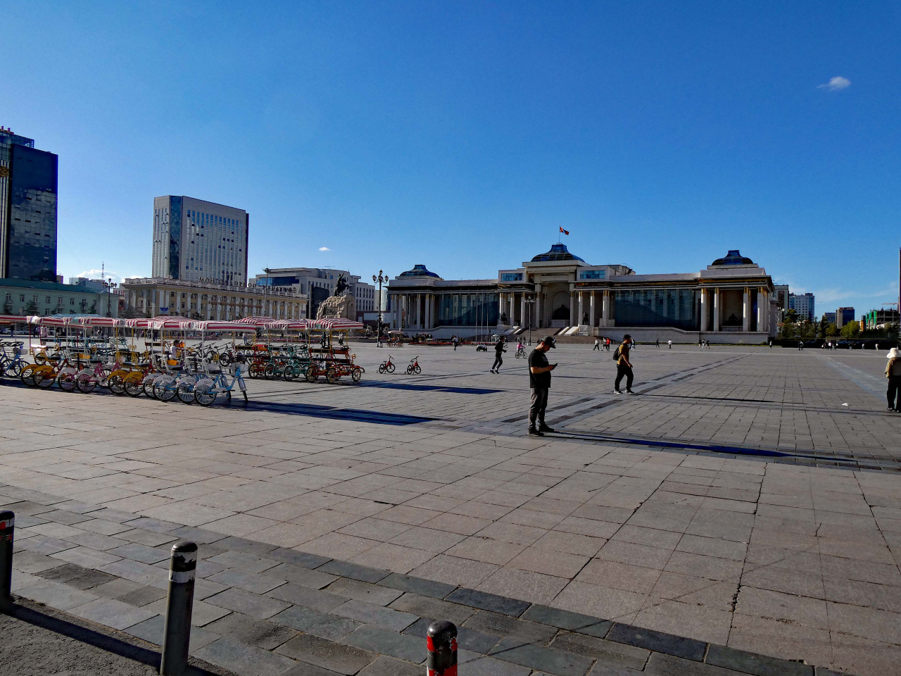 街中心部、モンゴル国会議事堂がある政府宮殿の前に広がる石畳広場で、ウランバートル観光客の殆どがこの広場を訪れると思います。広場周辺にはモンゴル国立博物館、チンギスハーン博物館、国立オペラ劇場などがあり、ウランバートル観光の出発点になっています。地元の方々は「チンギスハーン広場」ではなく、「スフバートル広場」と呼んでいました。