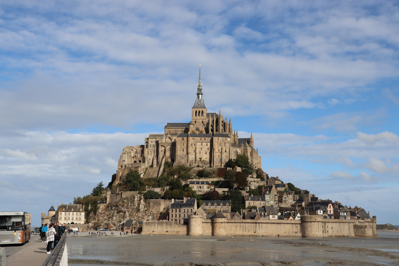 この日は、運良く晴れて空気が澄んだ状態でのモンサンミッシェルを見ることができました。パリからレンヌ駅に行き、そこからバスでした。バス停から無料のシャトルバスまたは徒歩40分で到着します。天気も良かったので徒歩にしました。もう目の前にあるのに中々着きませんでしたが、絶景を見ながら歩くので楽しかったです。残念ながら満ち潮の時ではありませんでしたが、孤島にある城はどの国に行ってもここにしかない唯一無二の場所だと思うので、フランスに行ったらぜひ訪れてみてください。