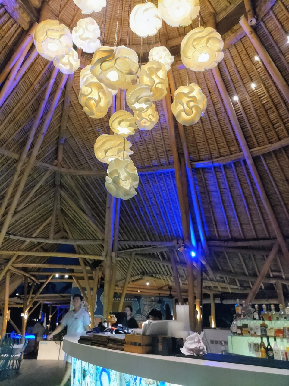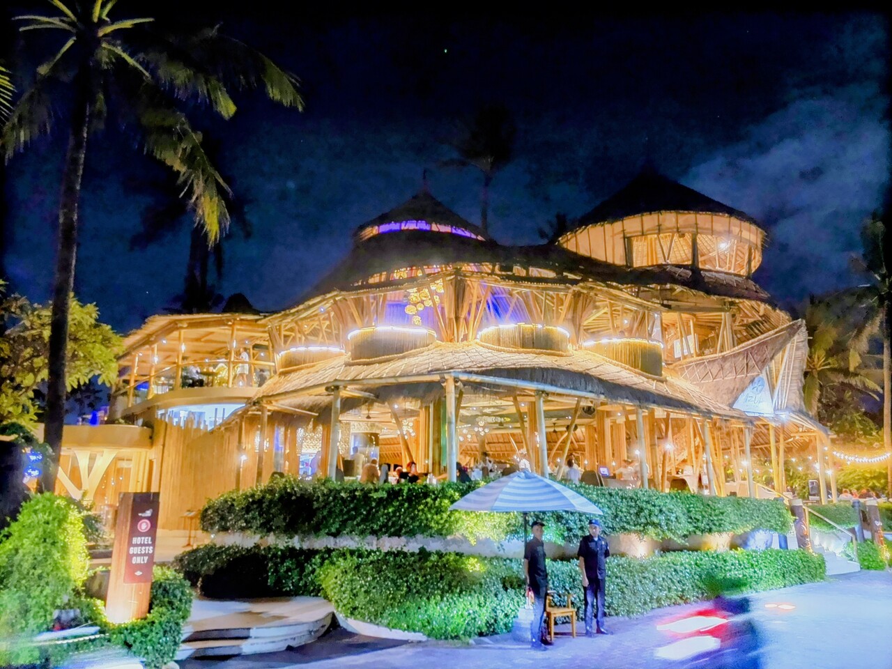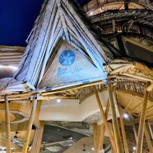 竹を組み上げた構造に茅葺き屋根が特徴的な二階建てのレストランは、2階に15歳以上の年齢制限があります。1階は年齢制限はありません。