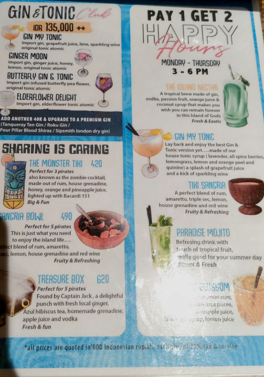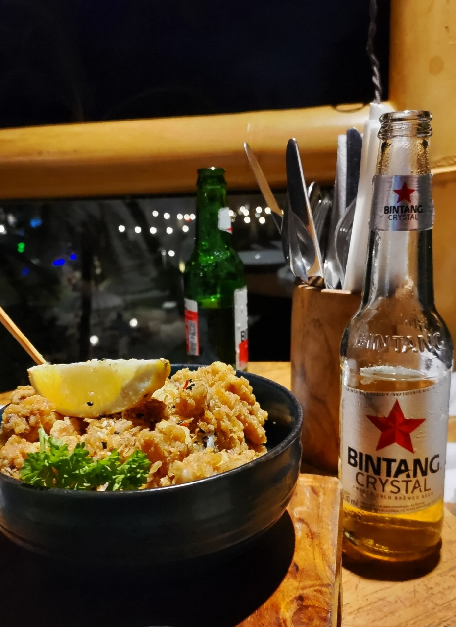 アルコールは各種取り揃えてあり、容器が面白いデザインのカクテルがありましたが、私達は定番のビンタンビールを楽しみました。