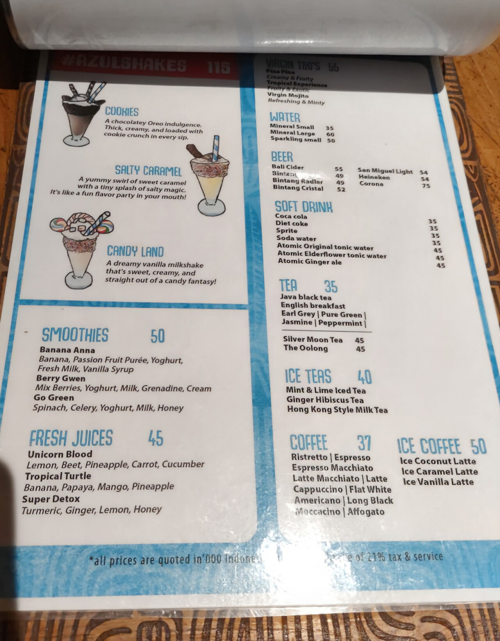 料理はインドネシア料理各種その他、多国籍メニューがあります。
