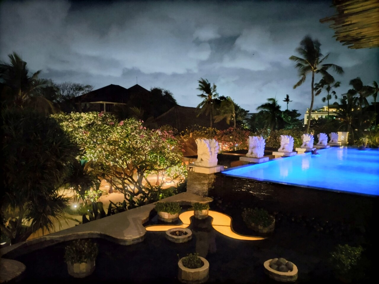 二階の奥の方にはインフィニティプールがあります。ここのカバナ席は最低利用料金の設定があるようです。