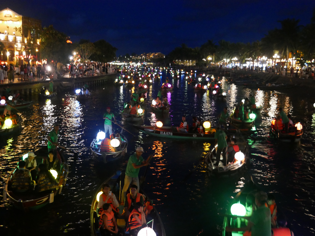 ちょうど、この橋のたもとがランタン船の発着所になっていて、橋の上から見ると、とってもきれいです。
