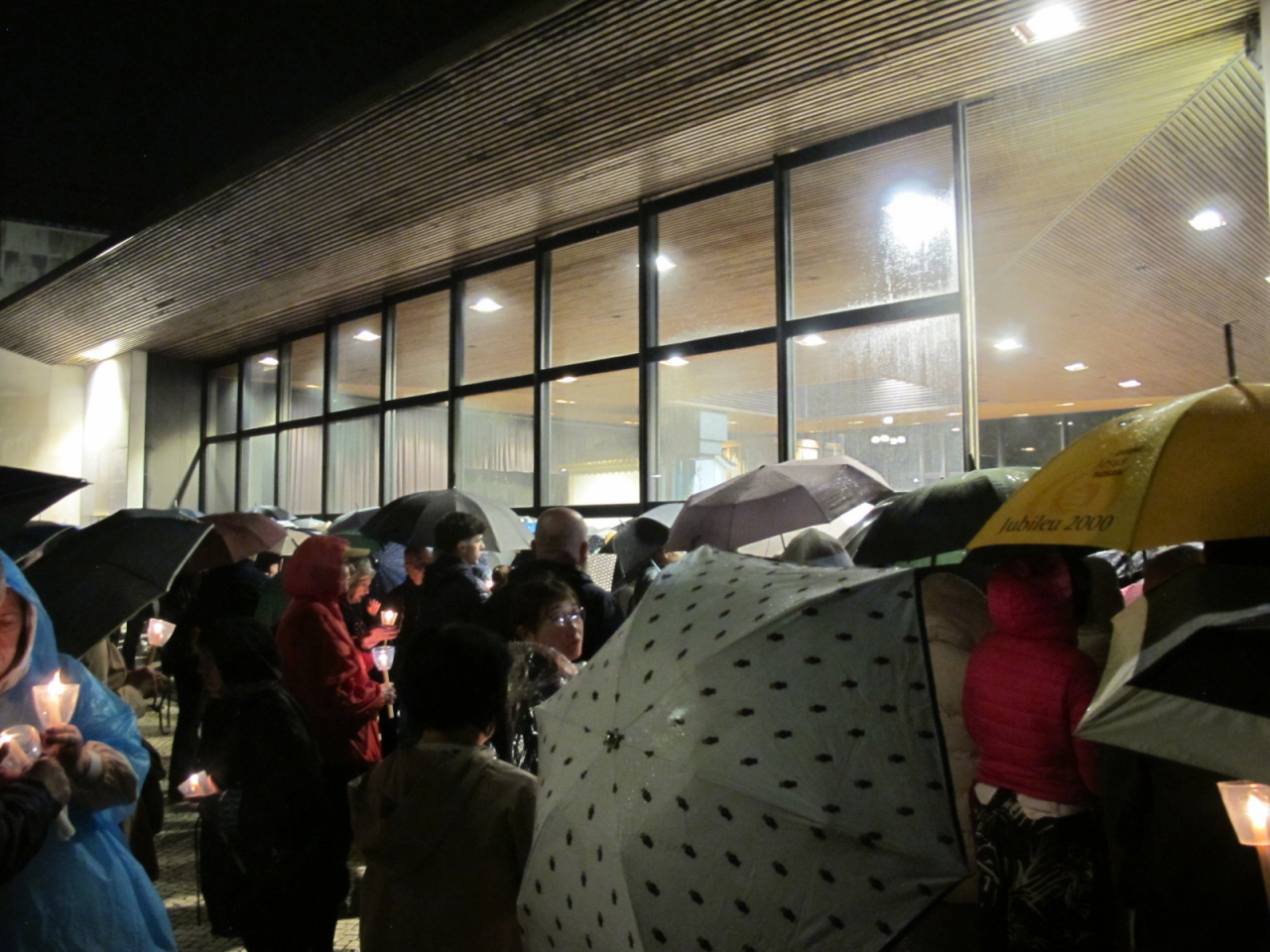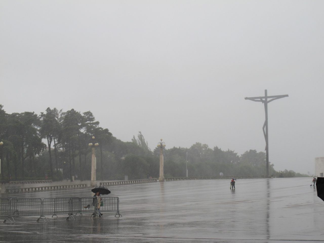 - ファティマへの旅の夜、世界で最も有名なマリア神殿の 1 つを訪れ、有名なろうそく行列 しかし 雨がひどくて こんな感じです