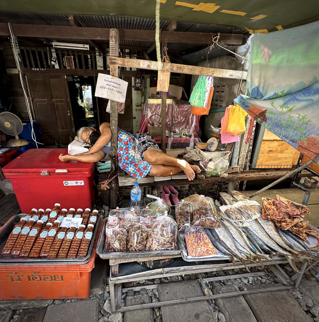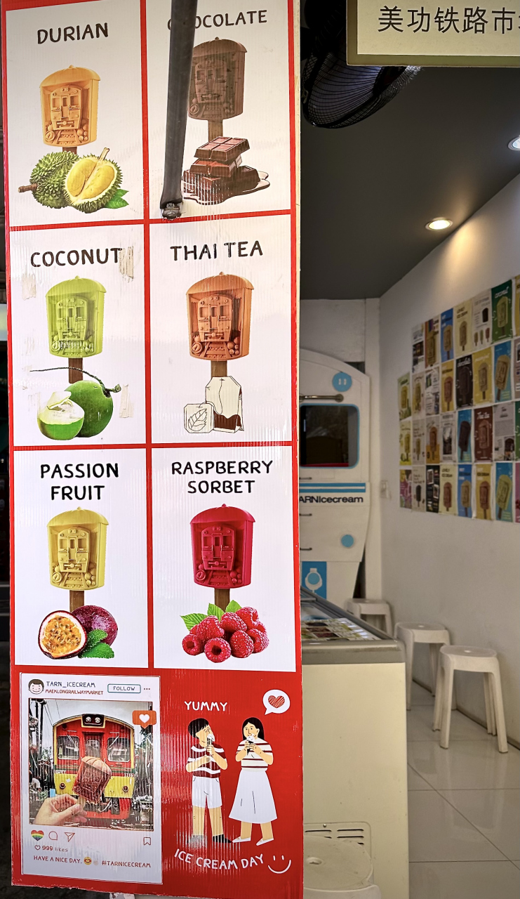 流石、ツアーというべきか、ちゃんと電車が来る1時間以上前に到着し、線路上の市場をみて(まあ、現地の台所と言える市場なので、観光客としては食べたり、買ったり、見るべきものは余り無いのだが…)、この日はとぉっても暑い日だったので、