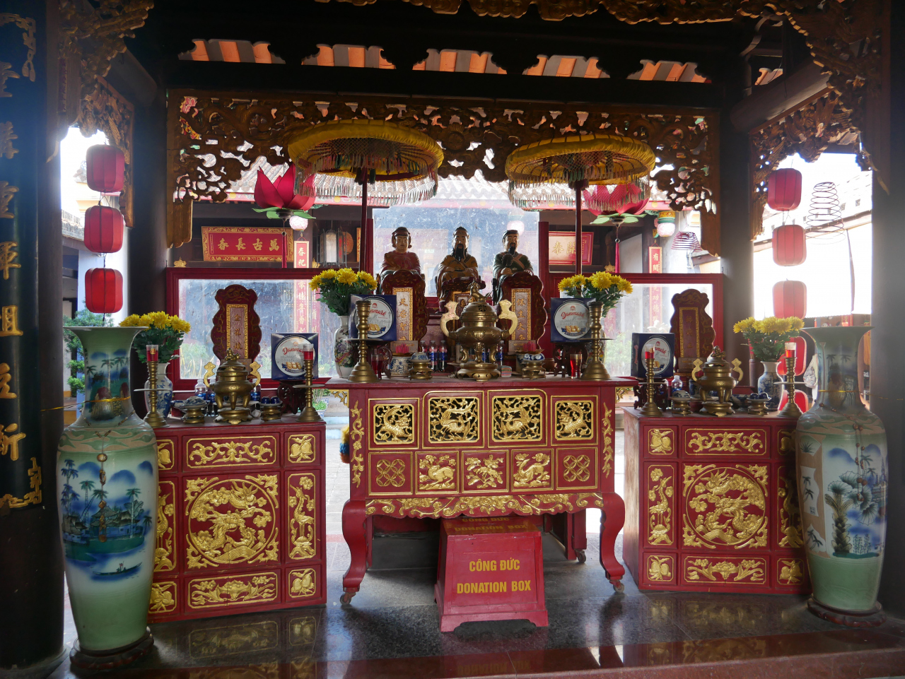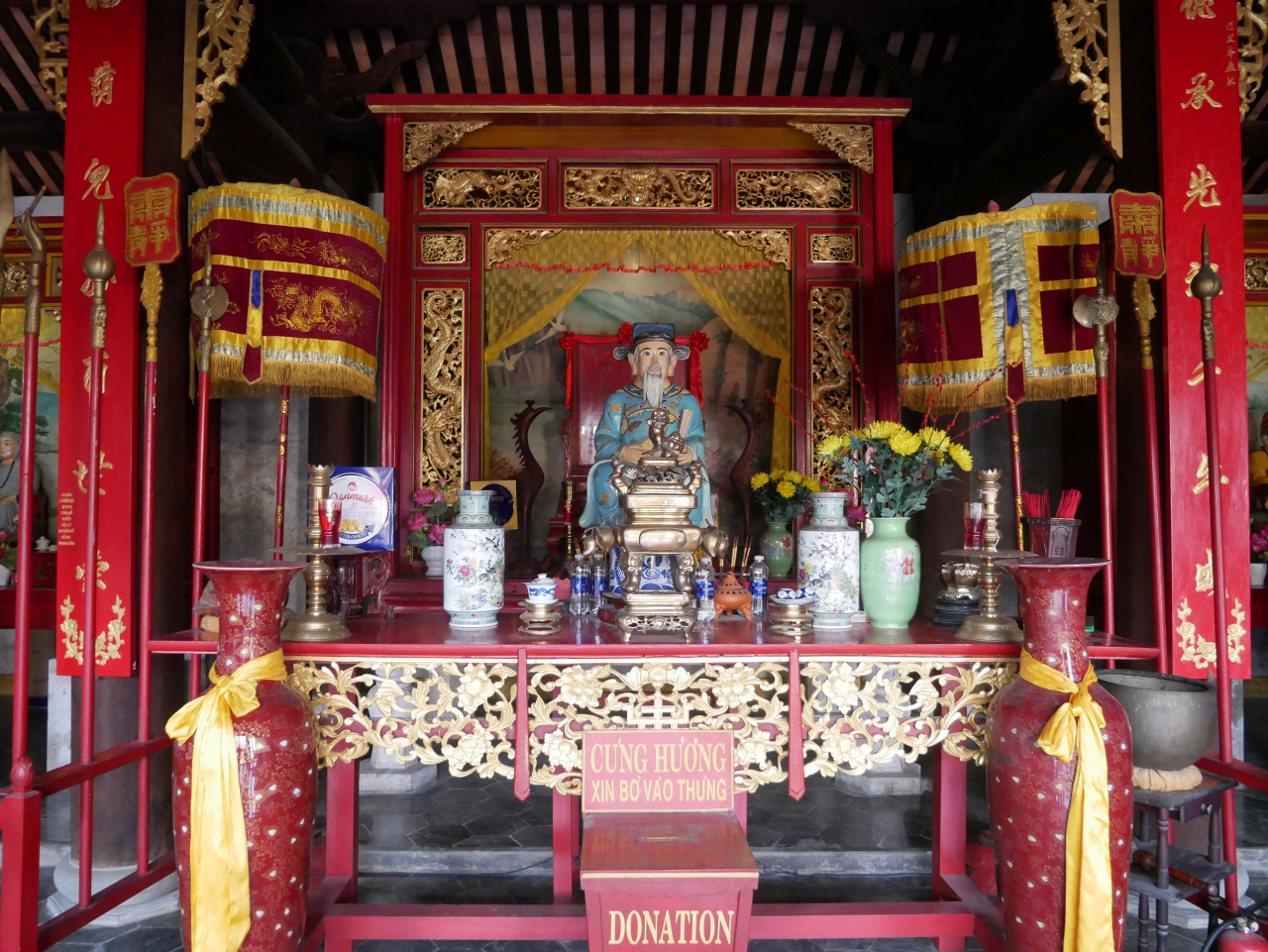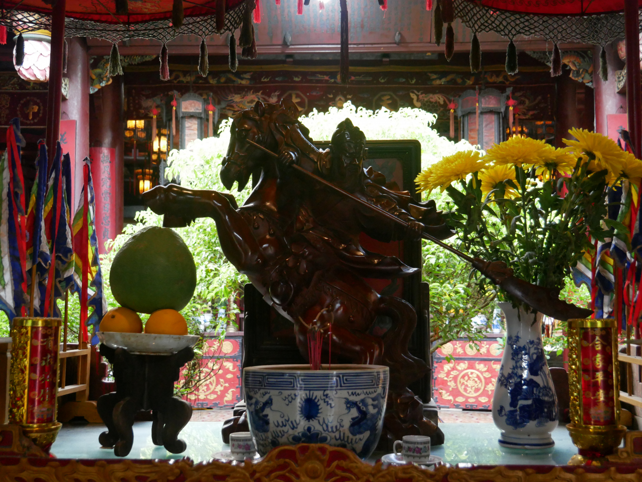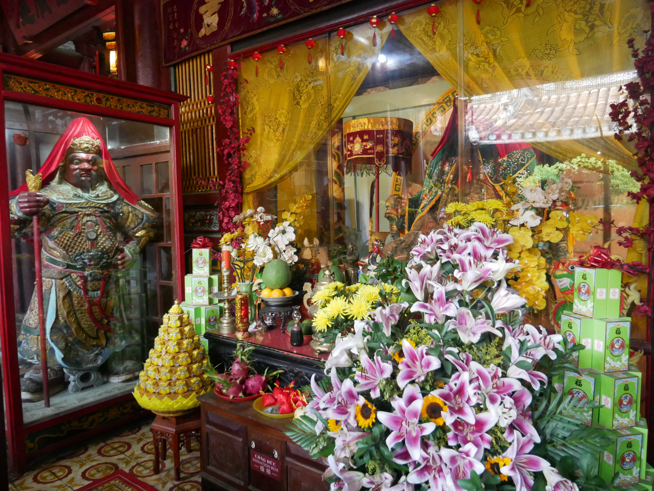 旧市街の東のはじのほうにあって、建物もあまり大きくはないので、あまり目立たない建物です。関羽の像をメインに、周倉や関平の像があります。