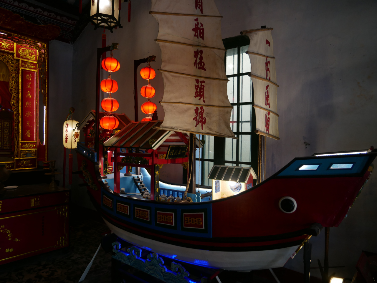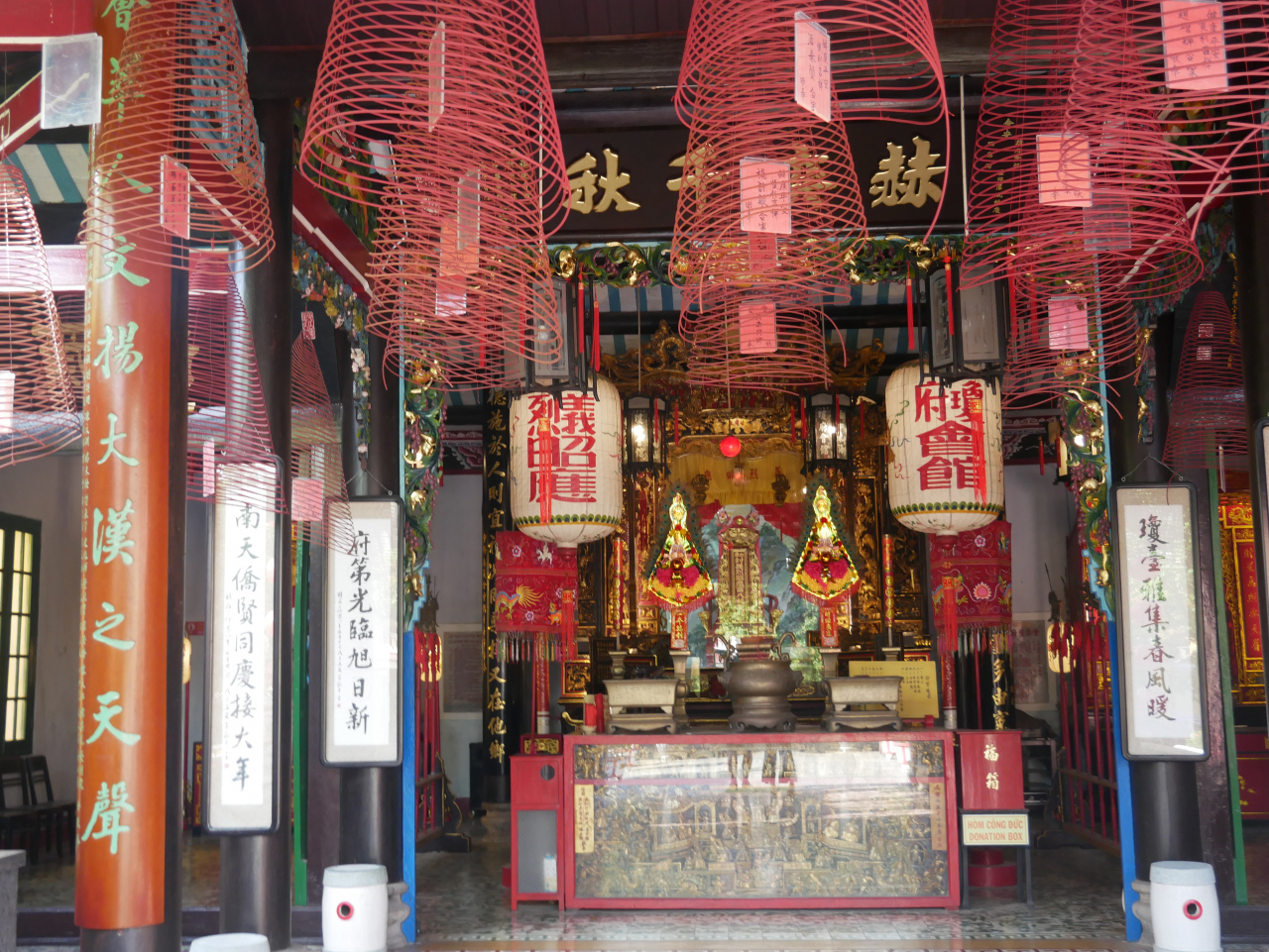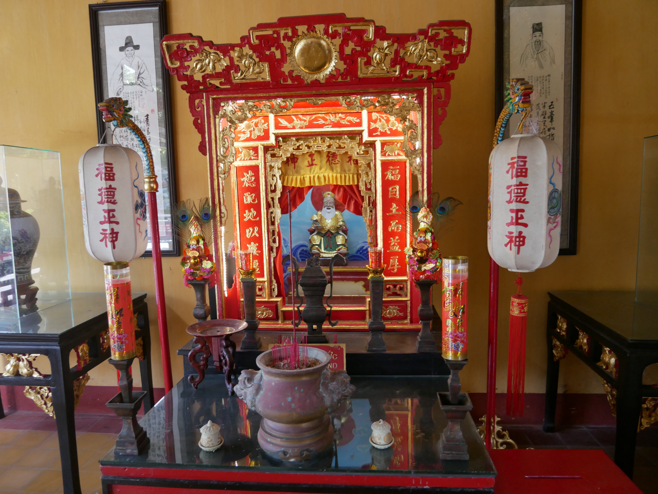 造りとしては、ホイアンにたくさんある中国各地の出身者の会館と似た造りで、ここも、他の会館同様に赤が基調の中華風の建物です。
