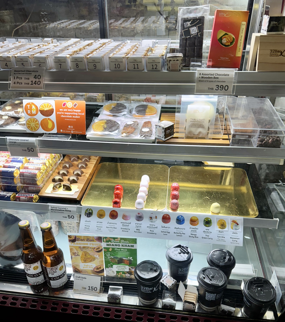 さて中に入ると幅は狭いが、綺麗なショーケースに色とりどりのチョコレートが並びコーヒーやらホットチョコレートなんかも作ってくれて、その場で飲める(本当はどこか座れるような場所を設けてくれれば更に嬉しいのだがなんせ狭い)。