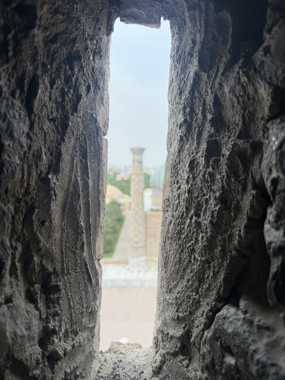 ウルベルク・メドレセのみミナレットに昇れるということで、1階の塔の下あたりにいる人が声をかけてきます。