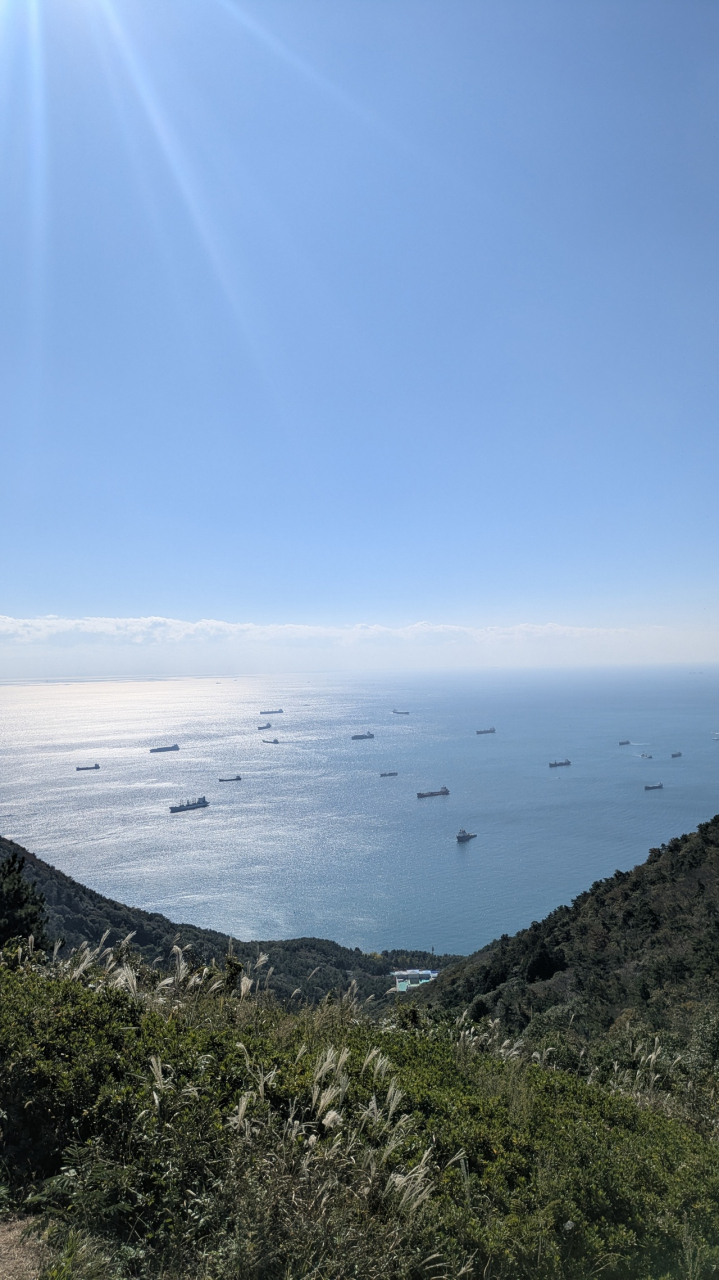 春は桜の並木道もあります。難易度の高いコースもあるそうです。何より頂上の景色が素敵です。海と船と青空と。下山はスピードアップしそうですが、普通の靴だとつま先が痛くなります。この山から近くあと2つほど尾根が繋がっているそうです。是非、釜山に訪れた際はこの素敵な景色と山頂の綺麗な空気を味わってみてください