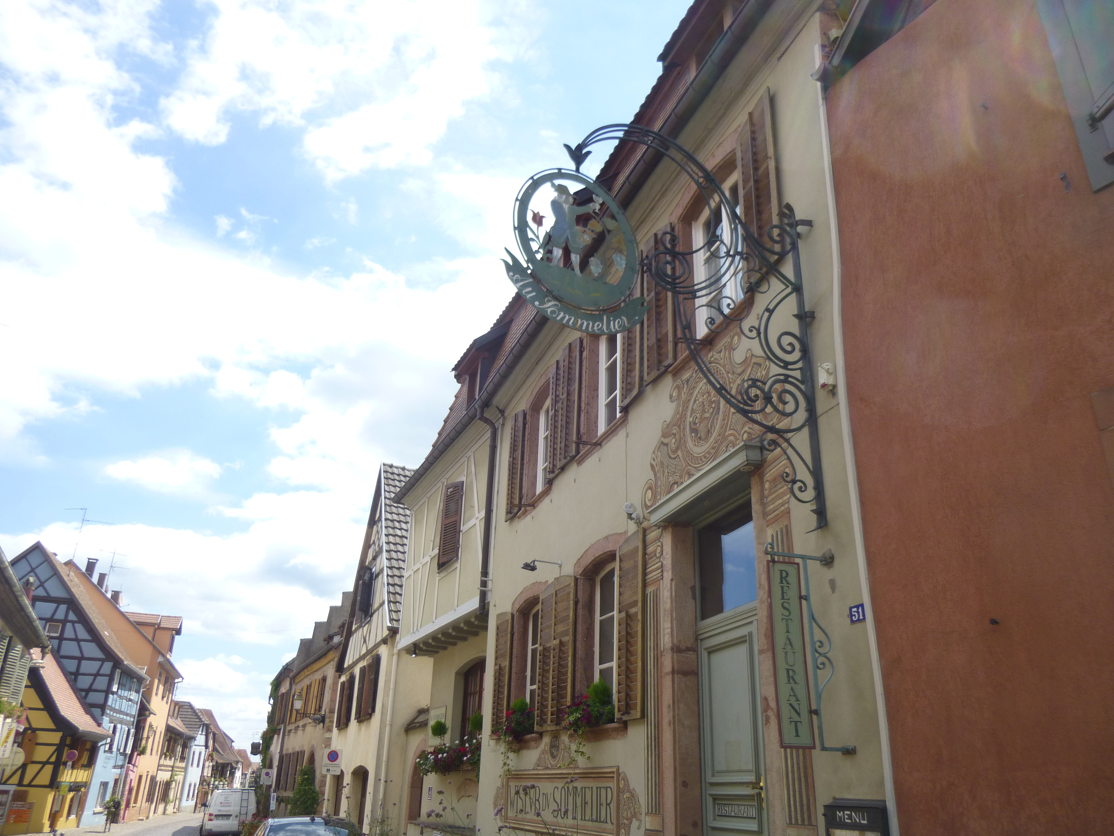 通り沿いに点在する“ Route des Vins d'Alsace ”(アルザスワイン街道)の標識がワイン街道の目印。村と村の間の公共交通は発達していないので、できることならレンタカーやタクシーを利用したい。