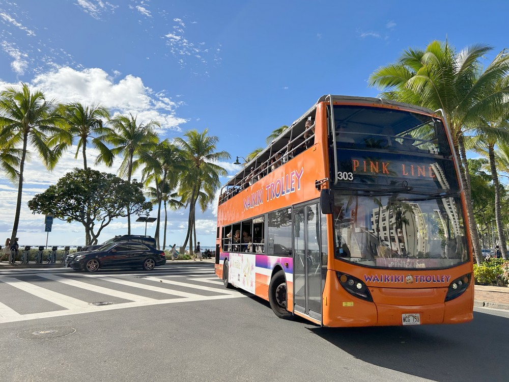 レンタカーを借りていましたが、駐車場代金が高いワイキキはやはり徒歩かピンクトローリーバスが便利です!
