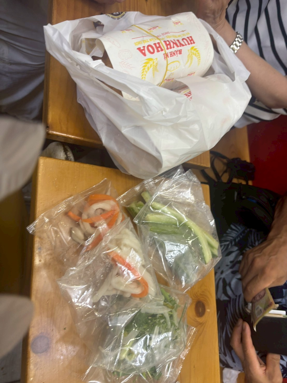 購入したバインミーは隣りの食堂の空くのをしばらく待ってテーブルに座ることが出来食べました。パンと具材が別包装になっていて自分でパンに挟んで食べます。