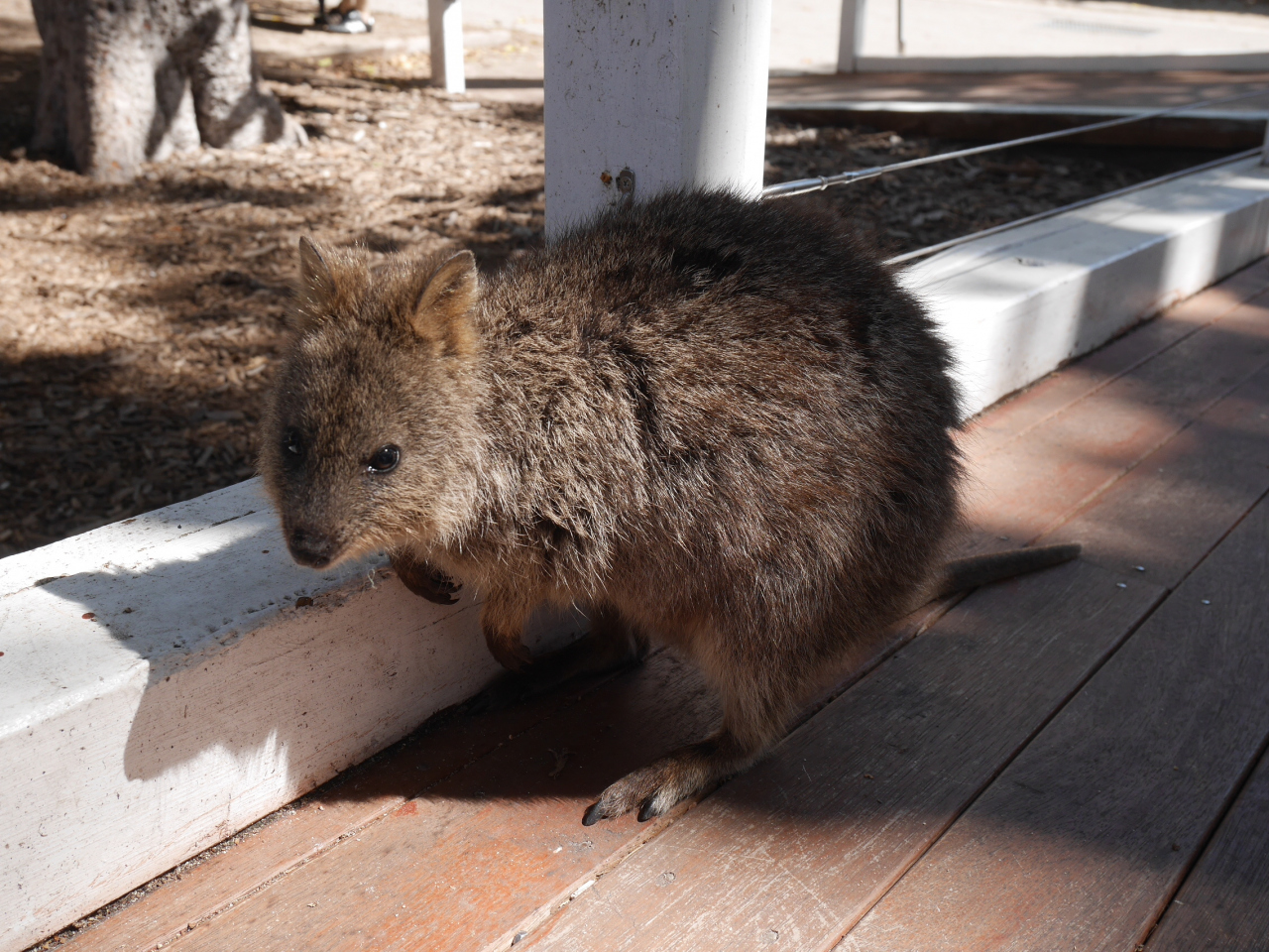 クオッカに食べ物を与えてはダメなんですが、そのルールを知らない人が与えちゃうので、クオッカも人慣れしていてレストラン付近に集まってきている感じです。