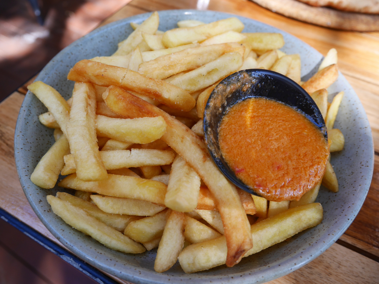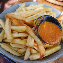 ビールのおつまみに「Rosemary Salted Fries w/basil aioli(ローズマリー塩 ポテトフライのバジルアイオリソース)」