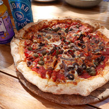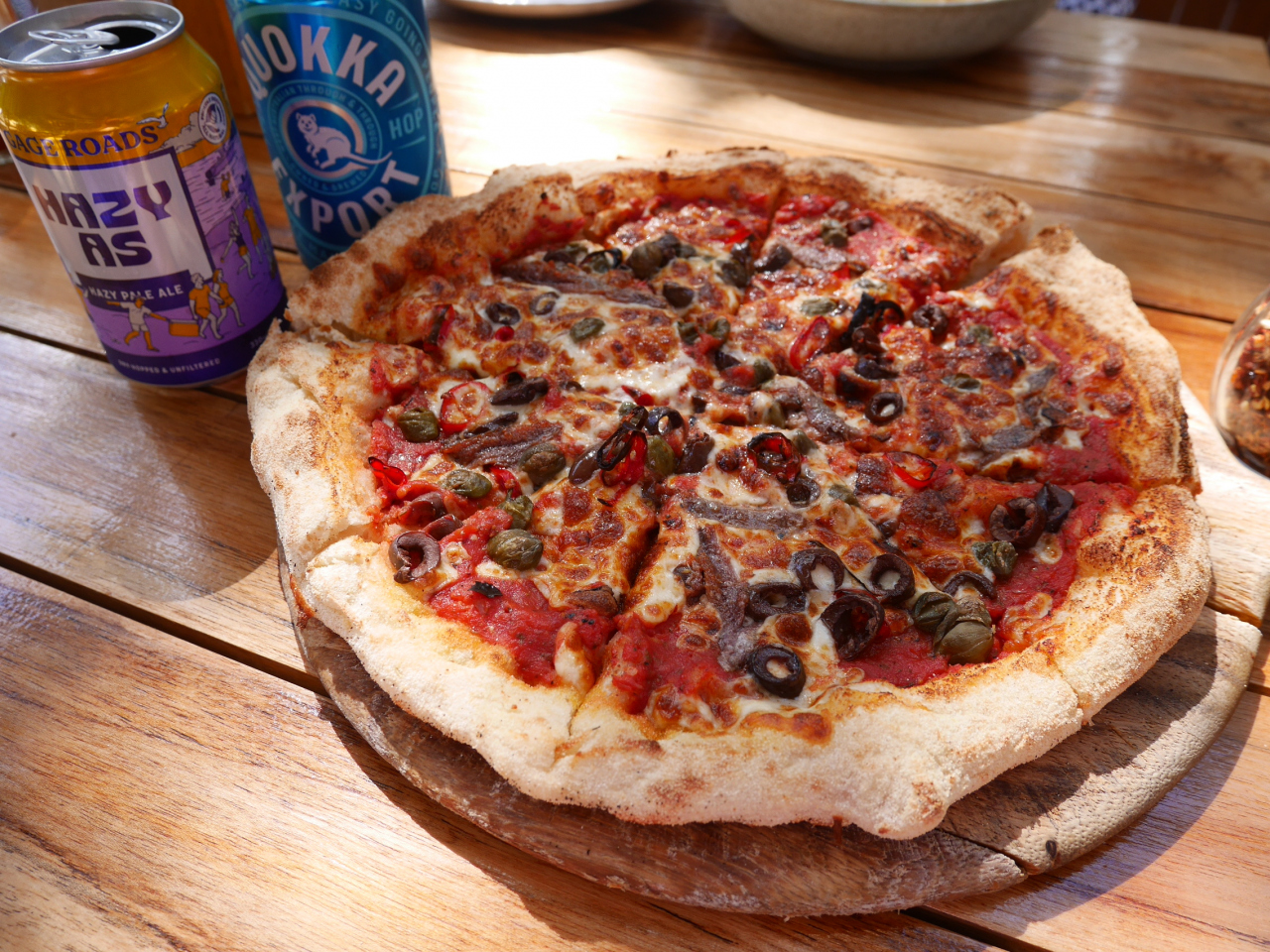 「Pizza Rottnesca」は、モッツァレラチーズ、トマト、ブラックオリーブ、アンチョビ、ケッパーがふんだんに使われたトマトソースのピザで、スパイシーな味がビールにぴったりでした。