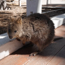 屋外と店内のテラス席の間には、クオッカが店に入ってこないように木のゲートが作られているンですが、ゲート近くまで来てお客さんのおこぼれを期待している子もいるようです。