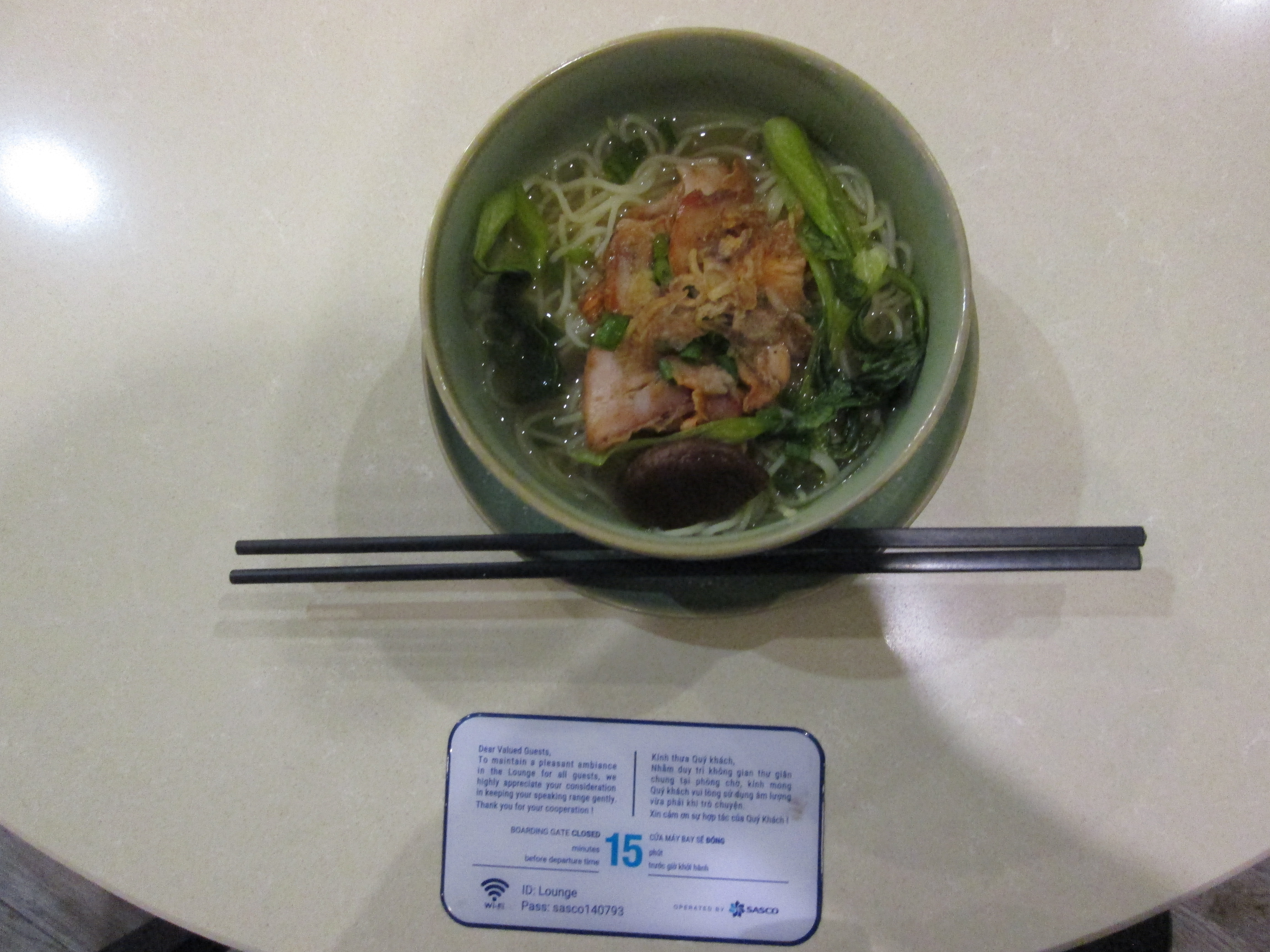 ル サイゴンネイズ ラウンジの一角にヌードルバーがあります。粉を使ったフォーだと思いますが、こちらは、セルフでビニールカバーを外して出汁を入れて、すぐに用意することができました。生姜や香辛料などの薬味の置かれていますので、自分の好みでいろいろな味に調整することができました。