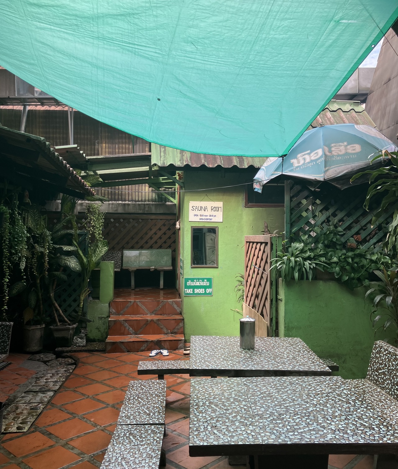 街中にある[バーンチャンダブリーサウナ]あるいは[Ban Wat Chan Sauna]とも言う…