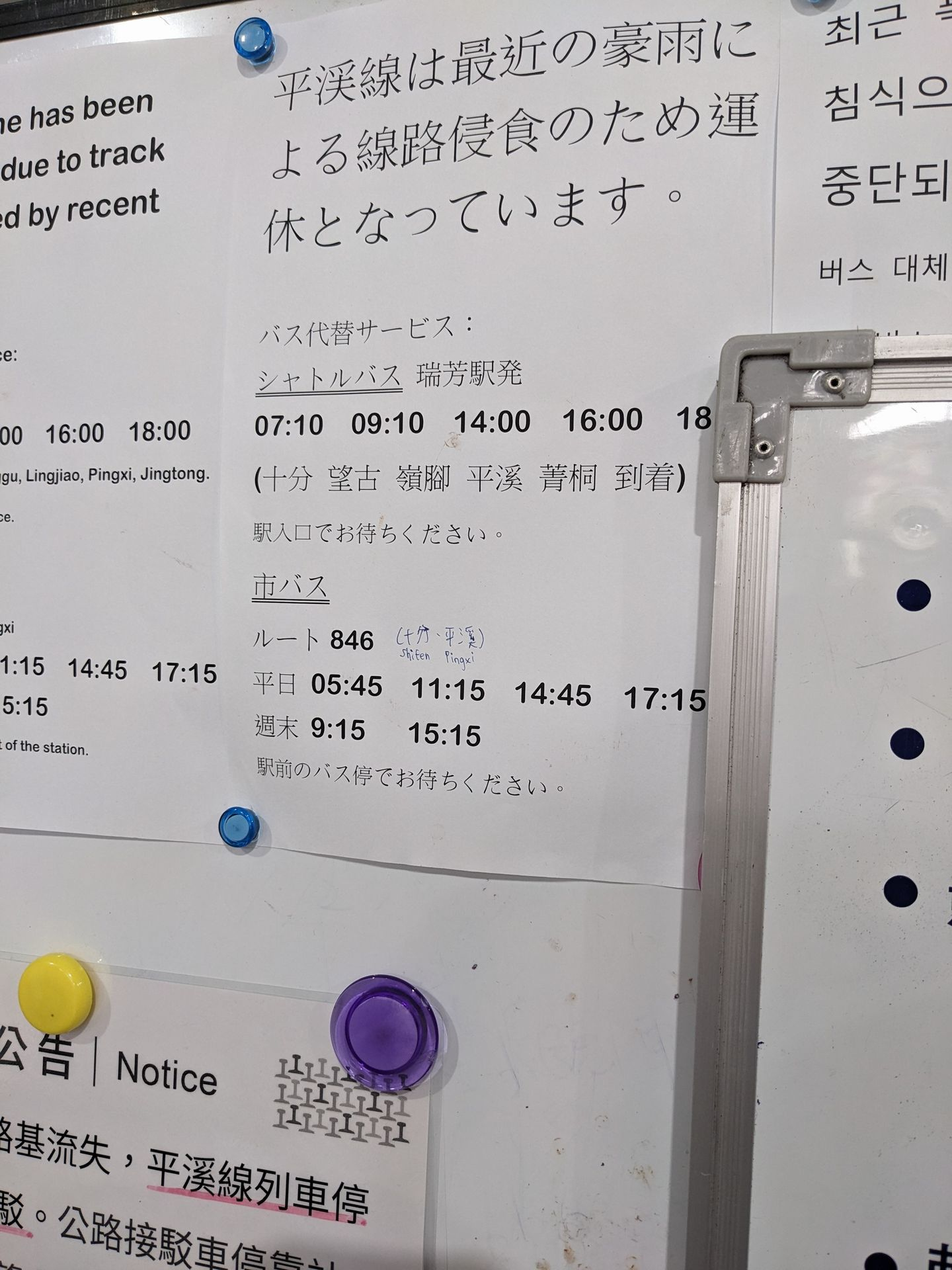 2026年1月末まで、平渓線運休に伴う代替シャトルバス