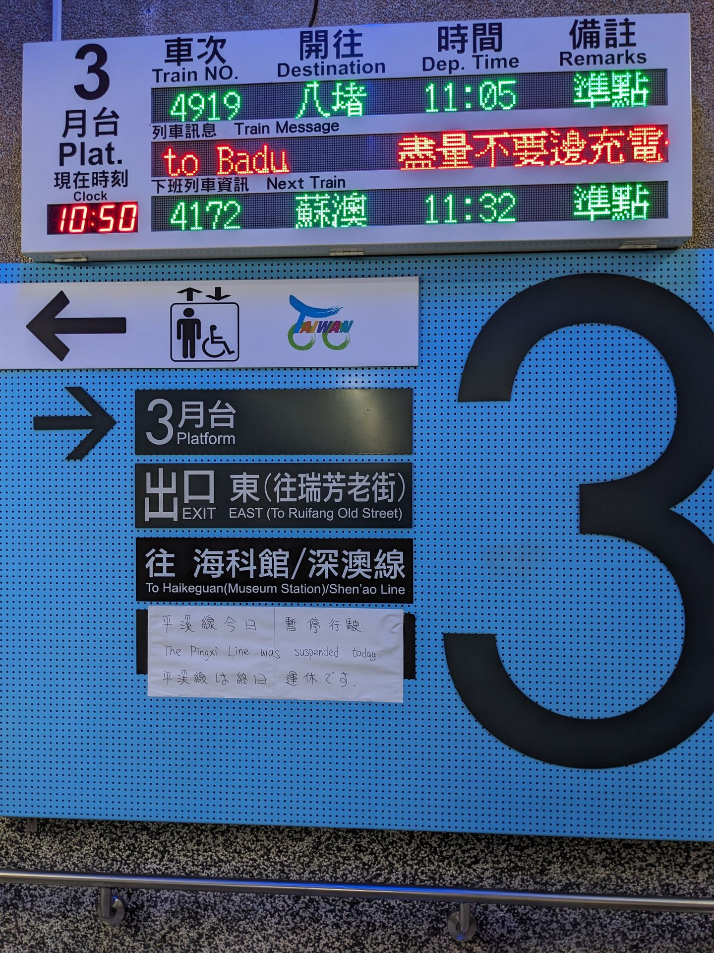 さて、どうしたものか? 天気予報を睨みつつ、瑞芳駅を基点に十分・九份に行く前提で調べまくったのですが、シャトルバスの瑞芳駅乗り場の情報を見つけられませんでした。「まあ、とにかく行ってみましょうか。」と言う事で、瑞芳駅へ。