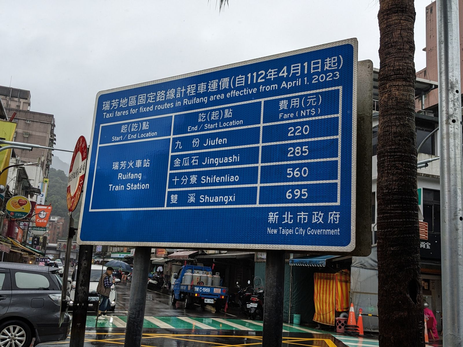 シャトルバスは、観光に使うには運行時間が限られるので、846番のバスで行こうとしましたが、バス停の表示は「25分遅れ」..。 時間がもったいないので、タクシー(定額 560TWD)で行くことにしました。 タクシーは高速に乗って、一旦基隆方向に走ってから、十分に向かいます。(遠回りされてるのか? と、思わず疑ってしまいました。運転手さんごめんなさい。)